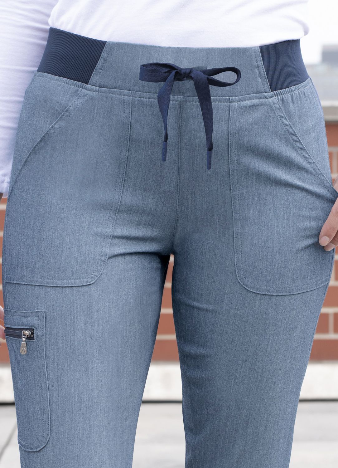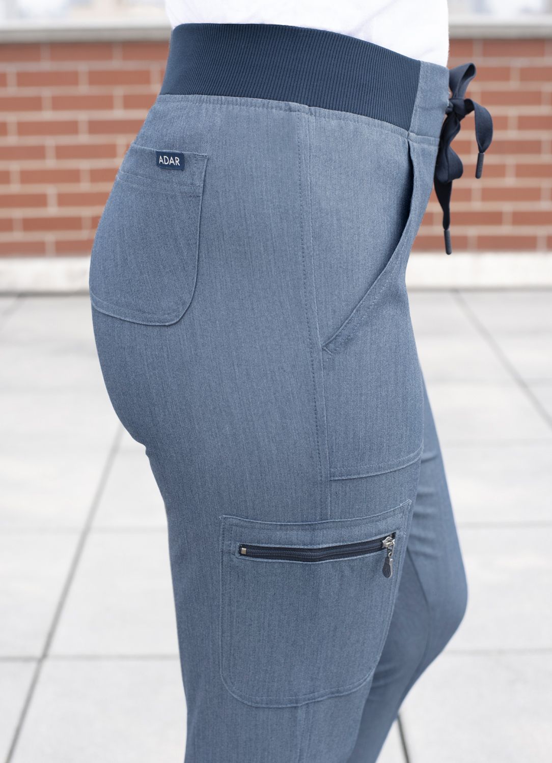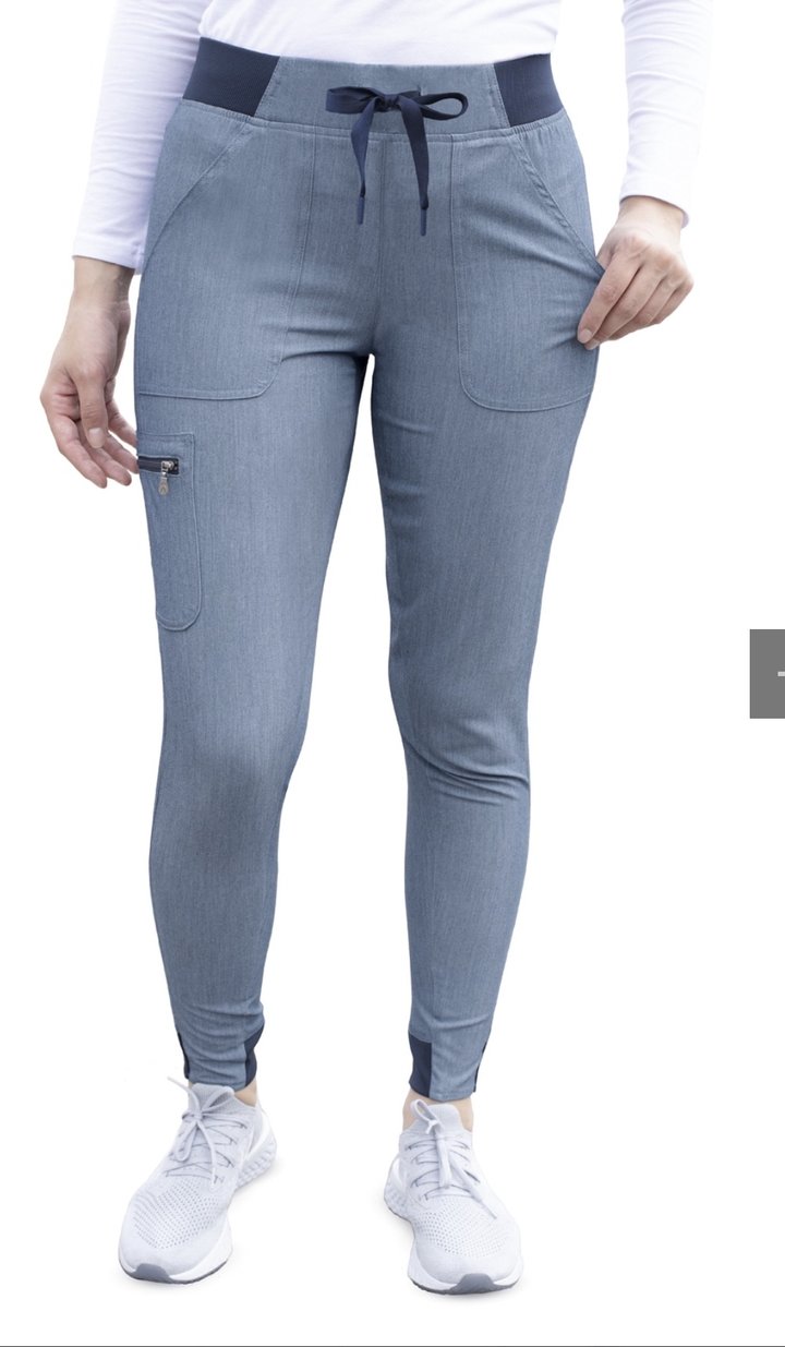 This Ultimate Yoga Jogger by Adar is the perfect pant to take you from working in a chilly medical setting to running errands. It is in a league of its own with super soft stretch fabric, order/wrinkle resistant fabric and a duel hem. Our duel hem features a trouser hem in the front and adds a pinch of style with a classic jogger fit hem in the back. These comfortable scrub pants sit right below the natural waist. It comes equipped with a leg zip pocket and side pockets for storage. Those 4 pockets create enough space to hold this, that and those. Upgrade your wardrobe with this must have jogger pant.