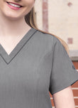 An elevated version of the classic v-neck scrub top. Beautiful details such as a double stitched neckline, back and front curved princess seams, shaped patch pockets and super soft stretch fabric truly make this scrub top a crowd favorite.Iconic Adar zipper detail adorns the front pocket. Features such as double stitching with tonal thread and odor/wrinkle resistant fabric make it just as durable as it is beautiful.