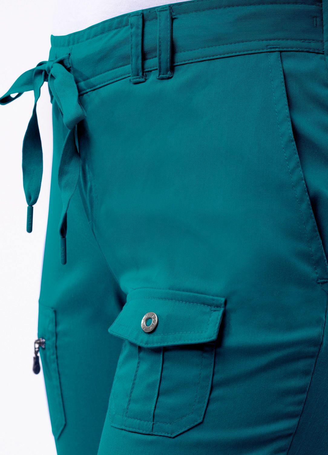 This pant is made to get you through every shift. It’s soft yet structured with enough pockets for all your work essentials. Flattering mid rise fit that sits right below the natural waist. Features a tapered leg and a popular lay flat waistband with a stretch outer drawstring. Front and back pockets include 2 deep side slash pockets, charming cargo pockets and zippered detailing. Allover double stitched seams and beautiful drape give these pants a luxurious finish.