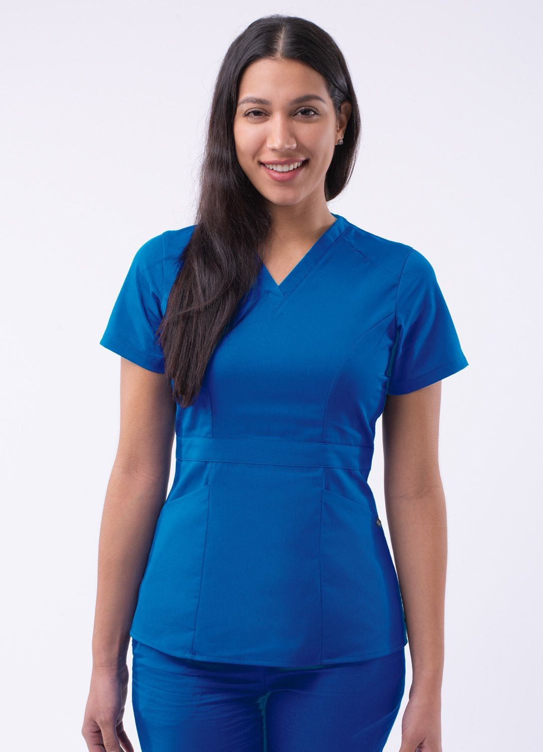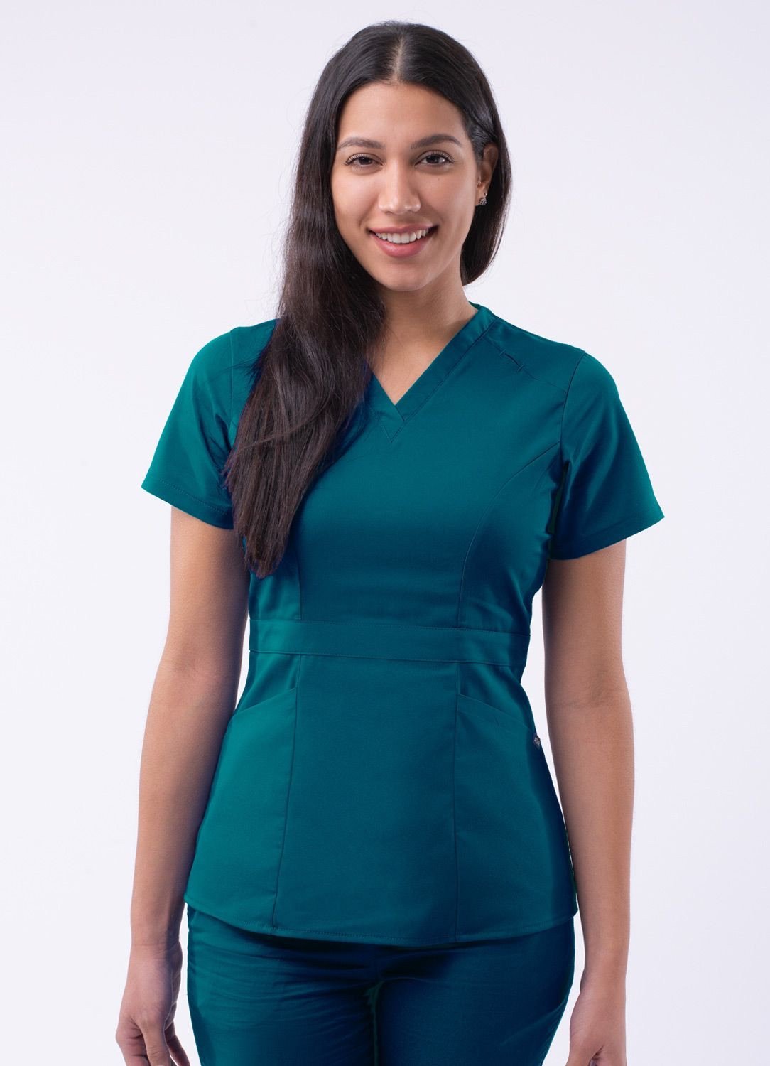 Tailored Peplum Scrub Top by Adar XXS-3XL / Teal Blue