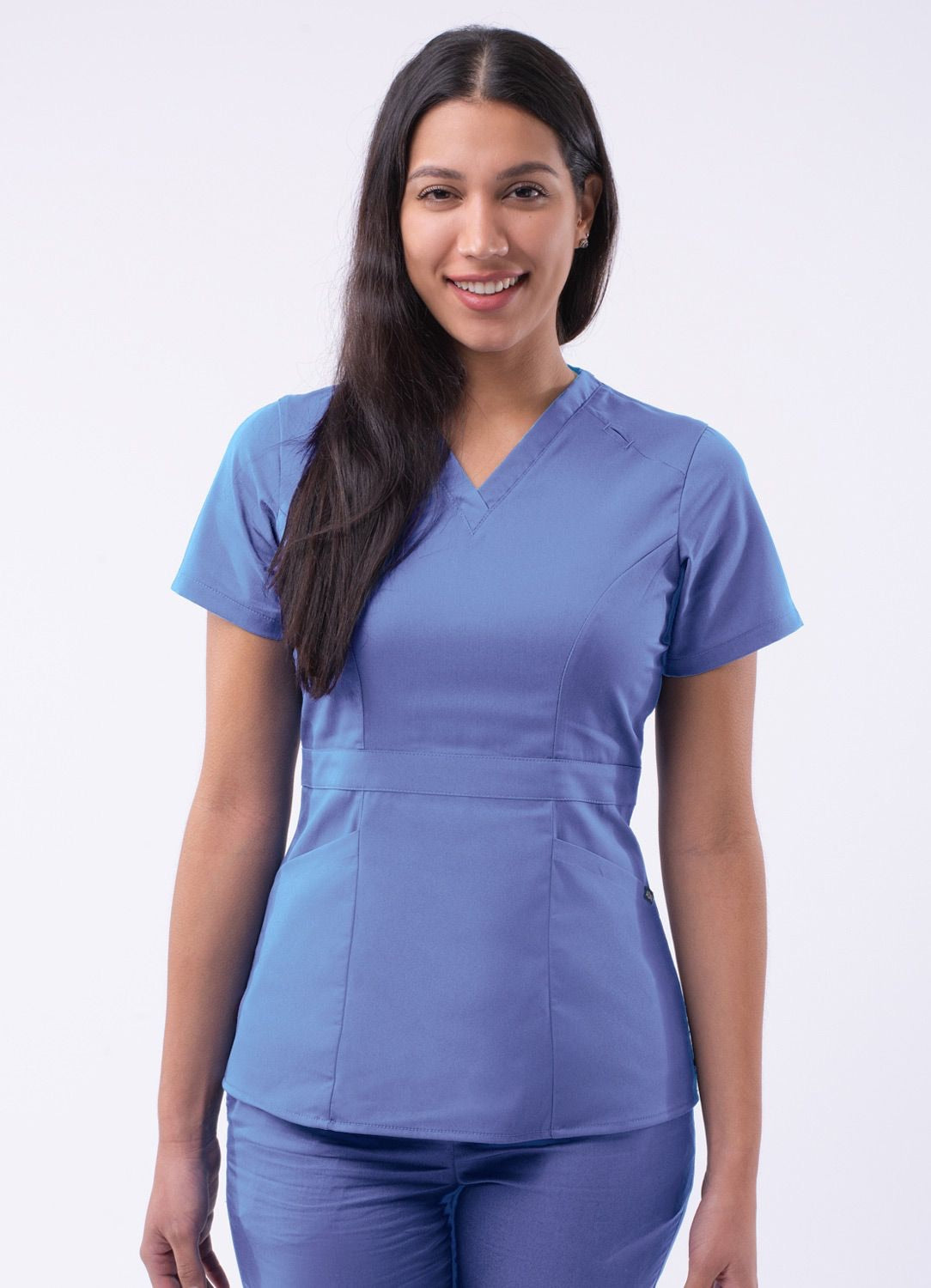 Tailored Peplum Scrub Top by Adar XXS-3XL / Ceil Blue