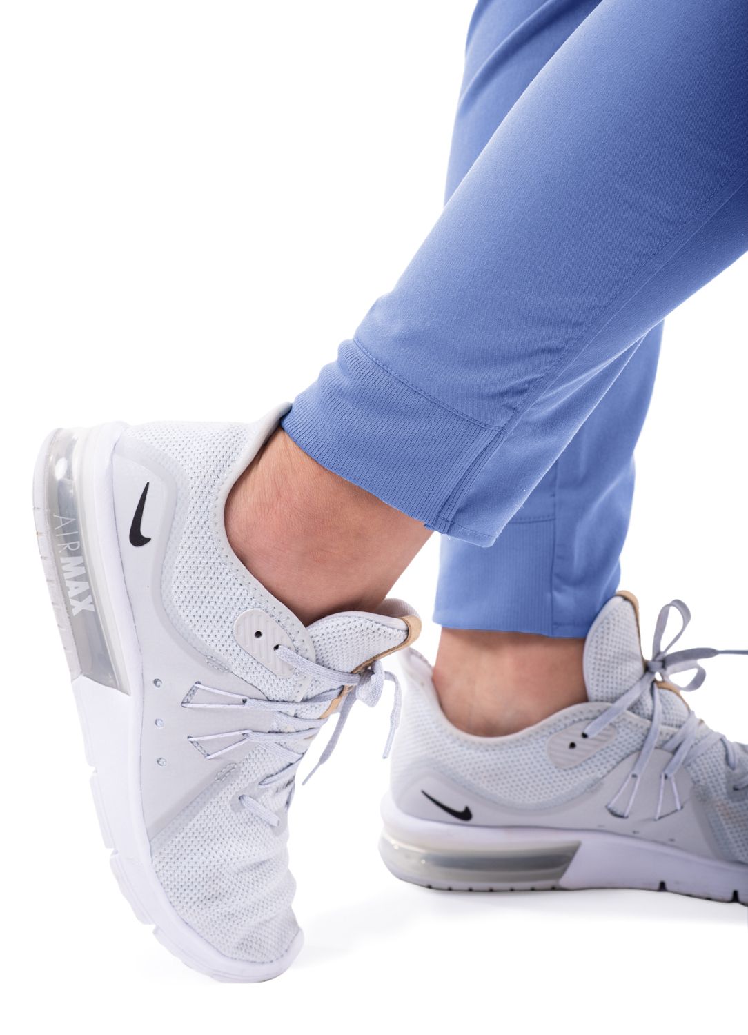 This Ultimate Yoga Jogger by Adar is the perfect pant to take you from working in a chilly medical setting to running errands. It is in a league of its own with super soft stretch fabric, order/wrinkle-resistant fabric, and a duel hem. Our duel hem features a trouser hem in the front and adds a pinch of style with a classic jogger fit hem in the back. These comfortable scrub pants sit right below the natural waist. It comes equipped with a leg zip pocket and side pockets for storage. Those 4 pockets create enough space to hold this, that, and those. Upgrade your wardrobe with this must have jogger pant.