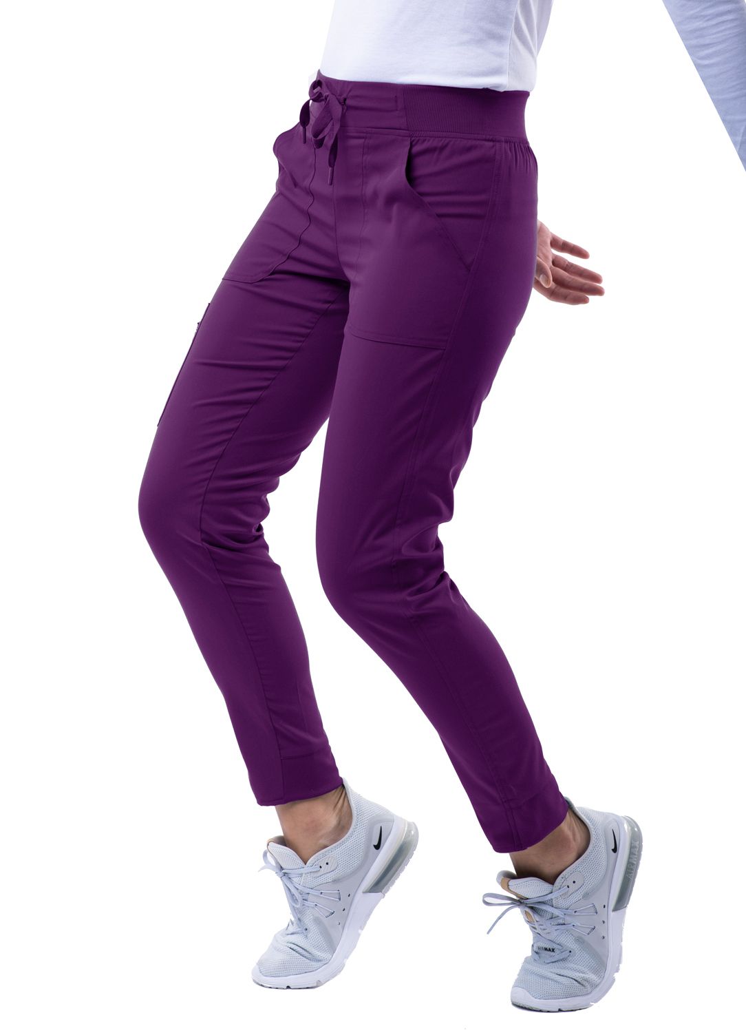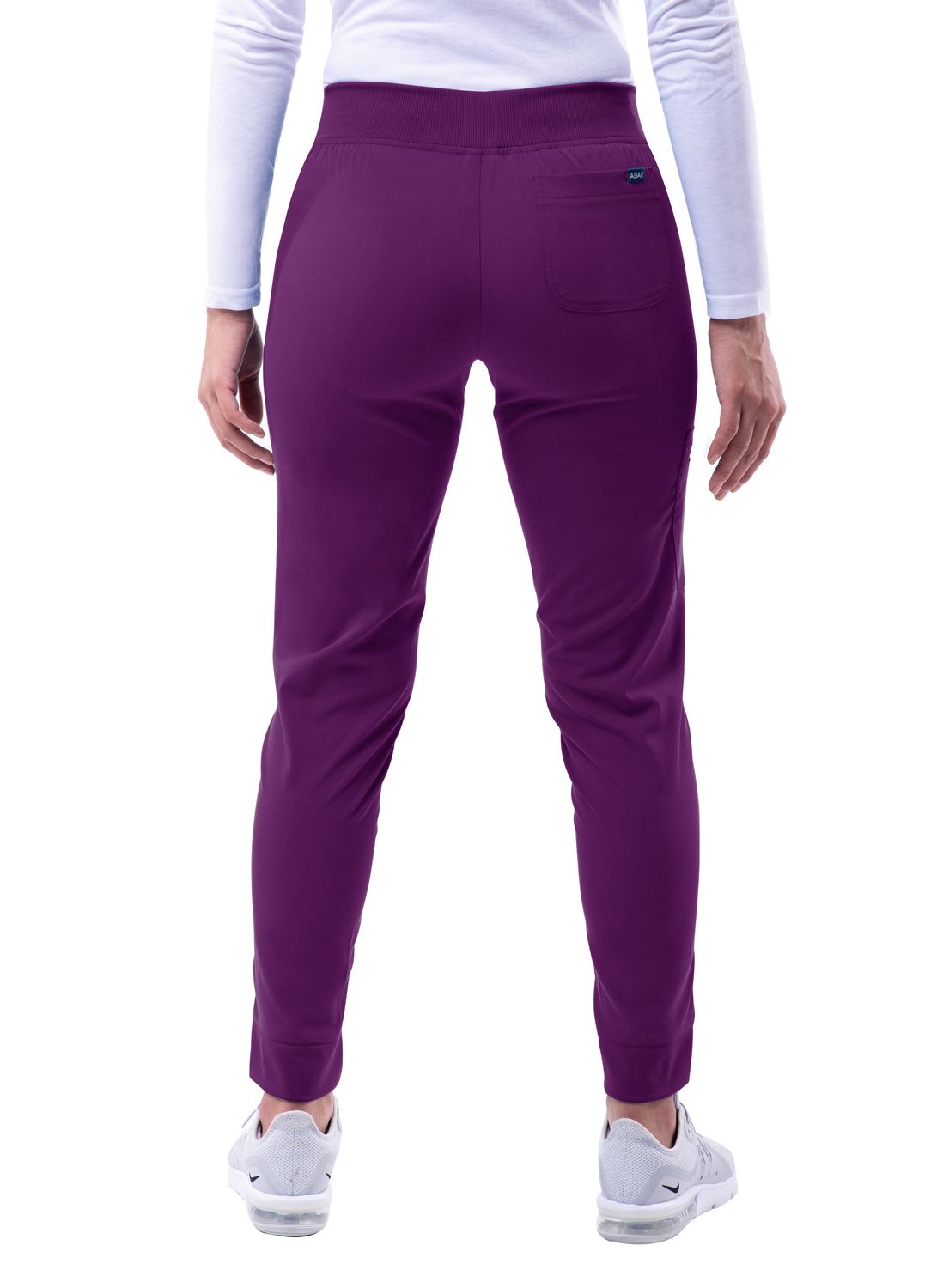 This Ultimate Yoga Jogger by Adar is the perfect pant to take you from working in a chilly medical setting to running errands. It is in a league of its own with super soft stretch fabric, order/wrinkle-resistant fabric, and a duel hem. Our duel hem features a trouser hem in the front and adds a pinch of style with a classic jogger fit hem in the back. These comfortable scrub pants sit right below the natural waist. It comes equipped with a leg zip pocket and side pockets for storage. Those 4 pockets create enough space to hold this, that, and those. Upgrade your wardrobe with this must have jogger pant.