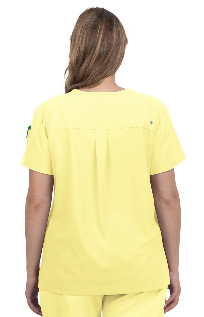 The cure for the common scrub is here! Fresh and functional top that looks great tucked in or out. Contemporary fit.