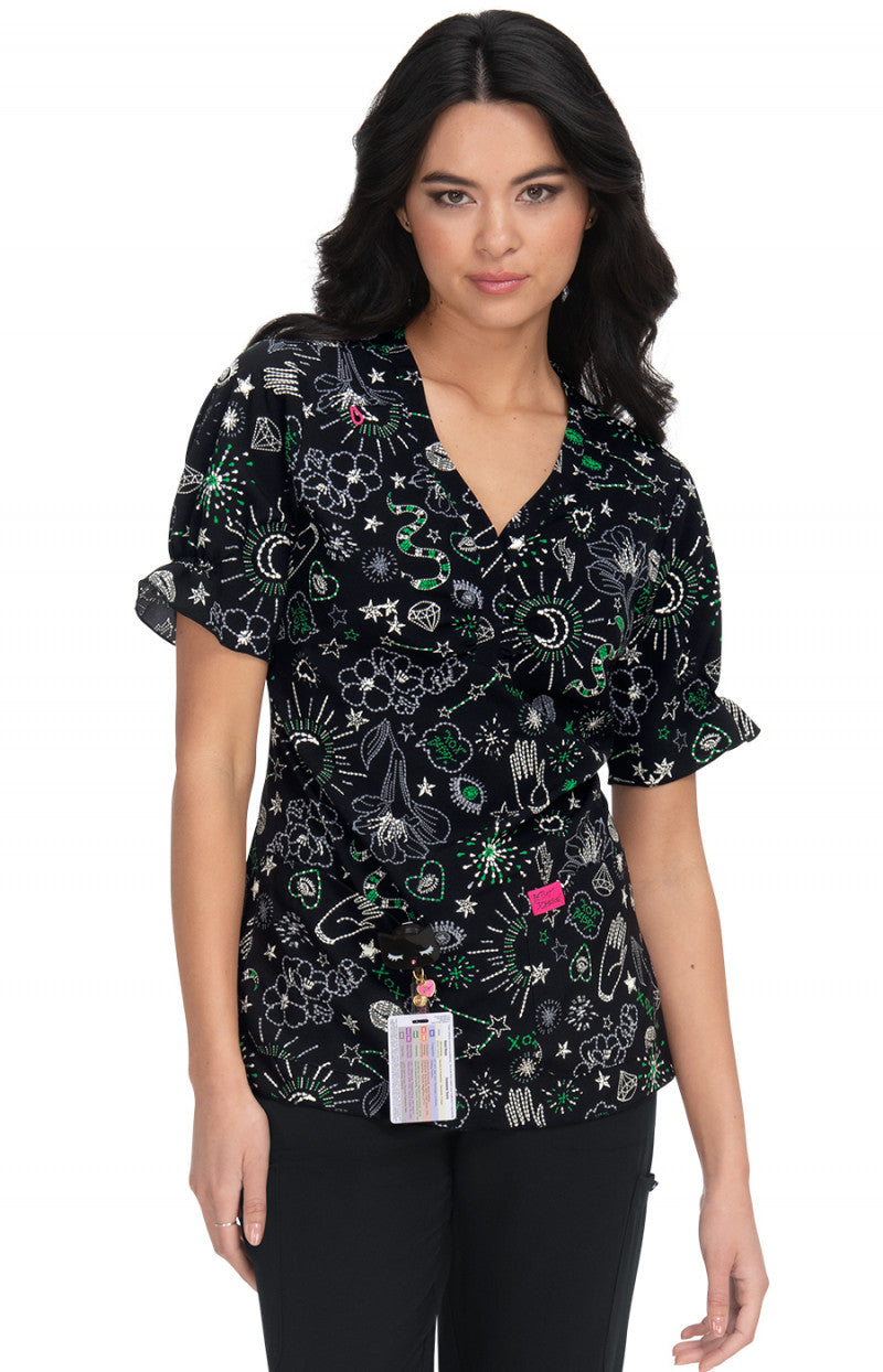 Fall in love with this fresh and fabulous stretch print top from Betsey Johnson. Contemporary Fit.