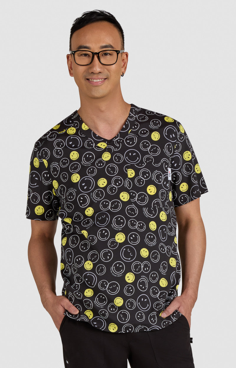 • koi | SmileyWorld Confident Men's 1-Pocket Print Scrub Top