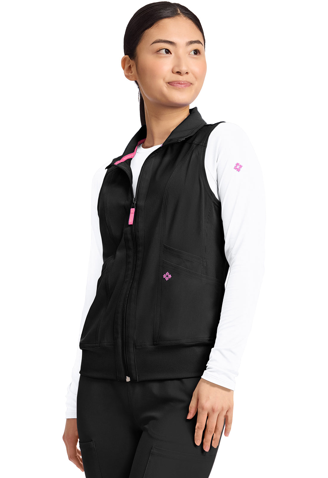 Meet your new vest friend. This sporty-chic essential is equal parts stylish and versatile, with a snap-off hood, stretchy back and side panels, and a sleeveless design that loves to be layered.