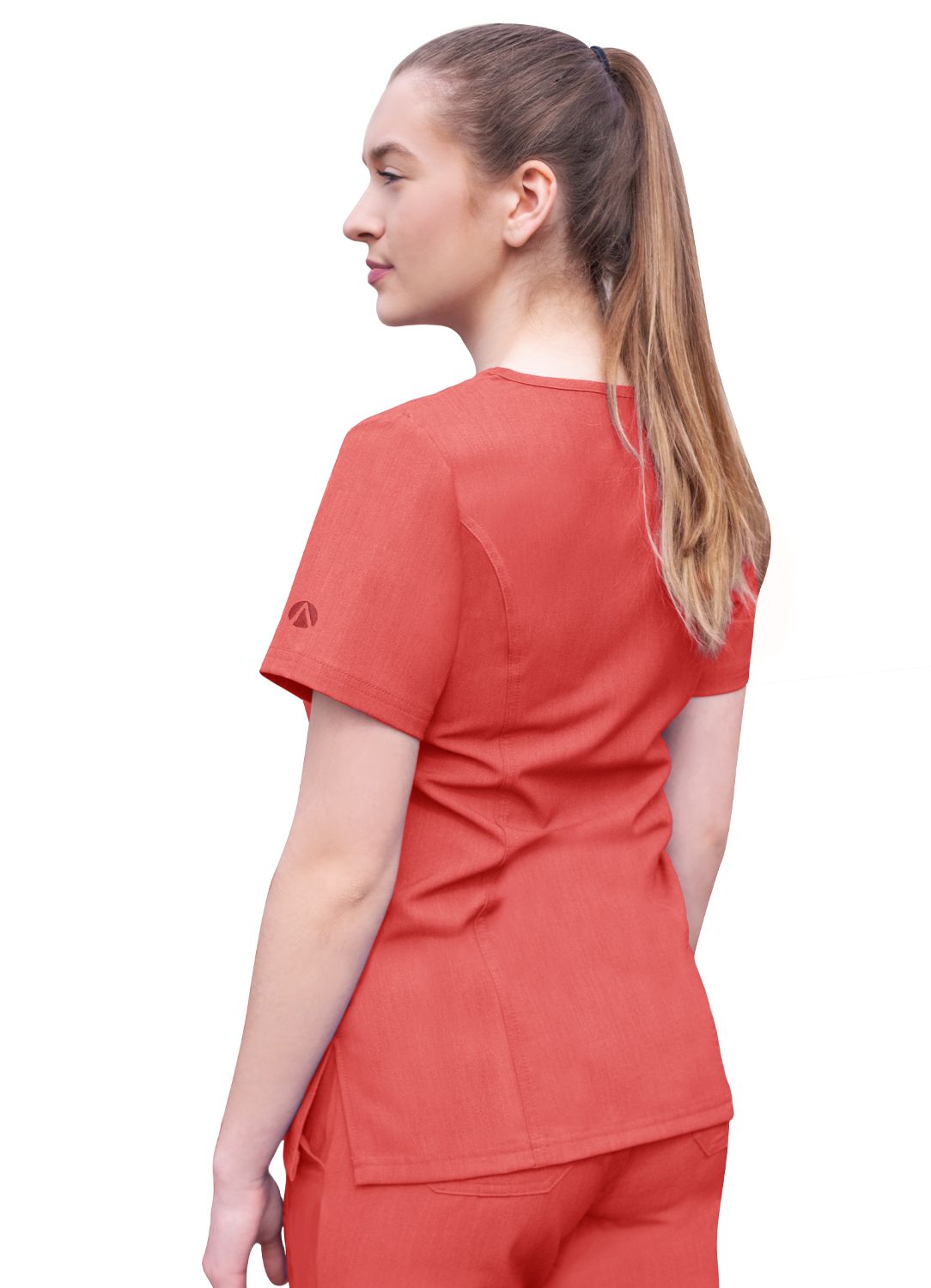 An elevated version of the classic v-neck scrub top. Beautiful details such as a double stitched neckline, back and front curved princess seams, shaped patch pockets and super soft stretch fabric truly make this scrub top a crowd favorite.Iconic Adar zipper detail adorns the front pocket. Features such as double stitching with tonal thread and odor/wrinkle resistant fabric make it just as durable as it is beautiful.