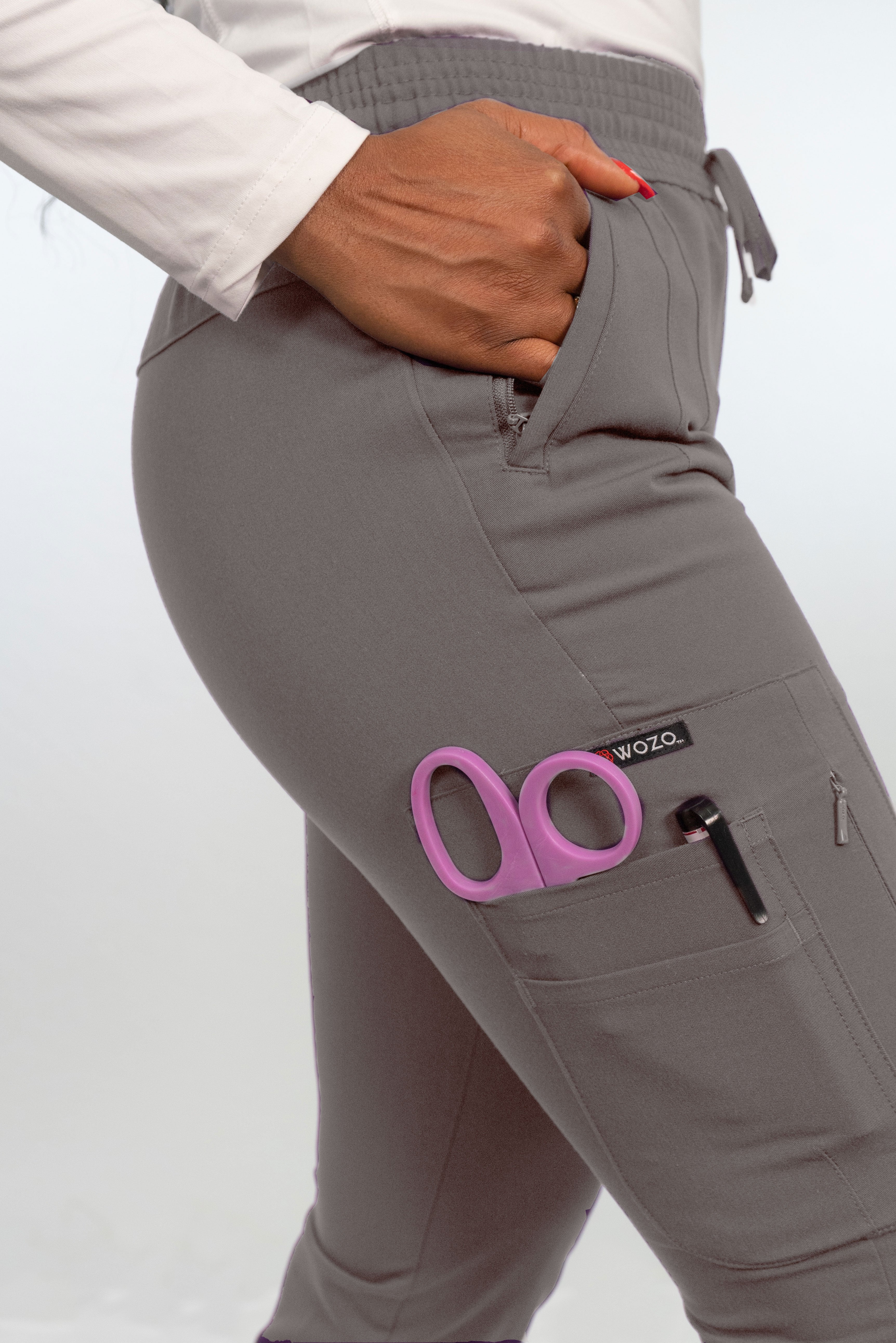 Designed for maximum comfort and long days at the clinic, Wozo’s slim-fit joggers are ready to work as hard as you do. Sporting waist-level zippered pockets along with thigh-level double-drop pockets and zippered pockets, these pants are ready to carry any combination of essential items you need, throughout the day.