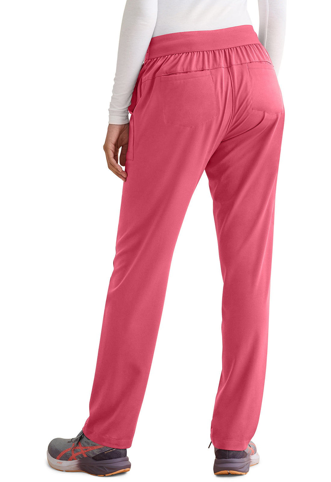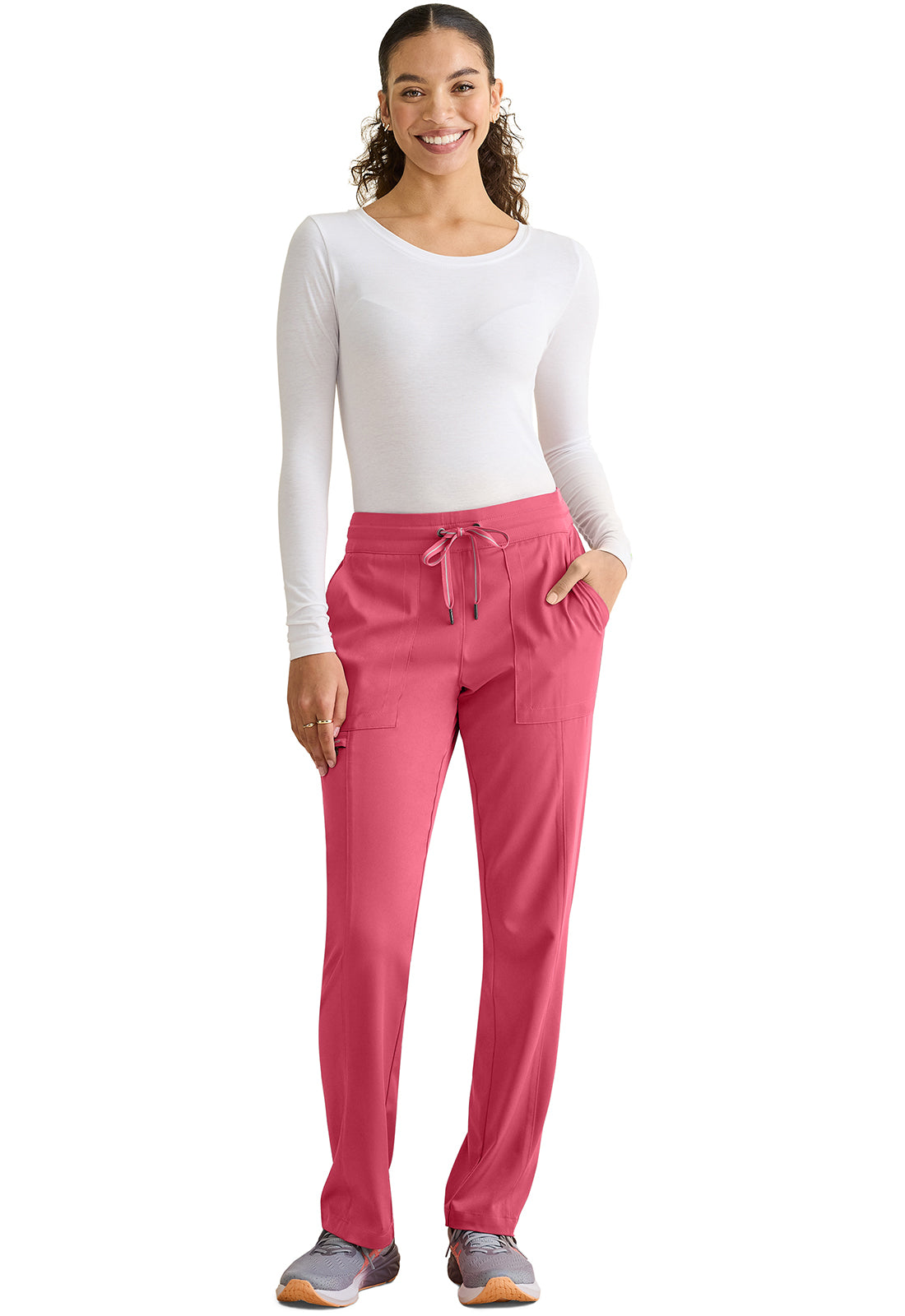The Kally pant offers updated styling with leg-lengthening front seams and a flattering straight leg. This limited edition style has a drawstring front and herringbone-patterned elastic back for adjustability and security. There are five pockets for organized storage: two front pockets, one welt zipper cargo pocket with a Healing Hands logo zipper pull, and two back welt pockets. Zipper cargo pocket and back welt pockets include pretty printed pocket bags. A back yoke provides a better and smoother fit. Modern fit. 15" leg opening. Inseam: 30.5"