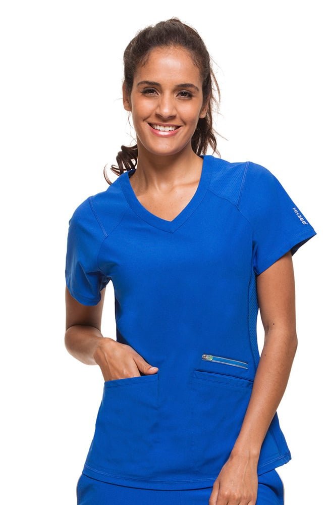 Serena V-Neck Top features texture fabric details on the shoulders and side panels that wick moisture quickly to keep you dry and comfortable. The stylish raglan sleeves, front and back princess seams, back darts, and side slits make for a fitted professional look.