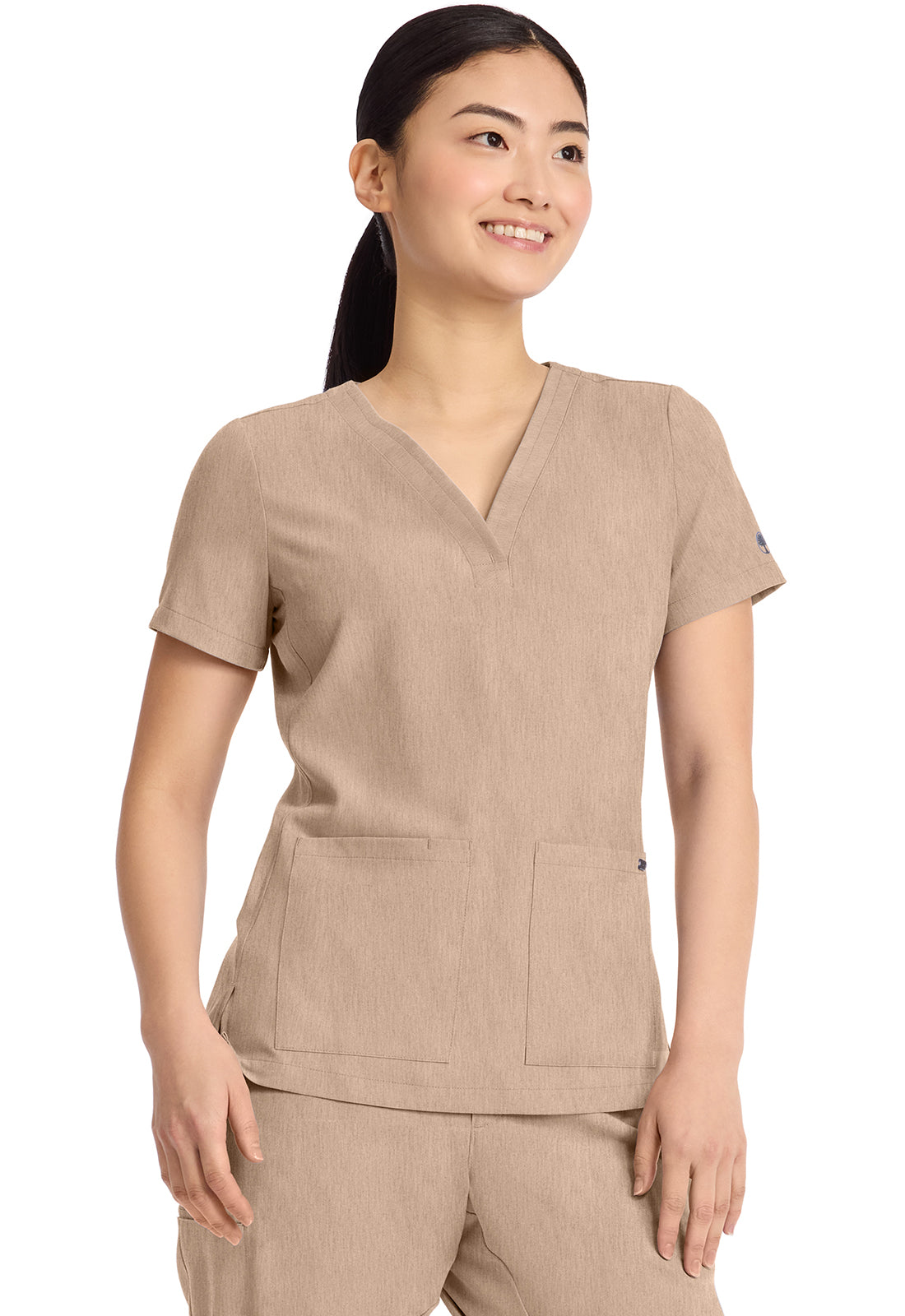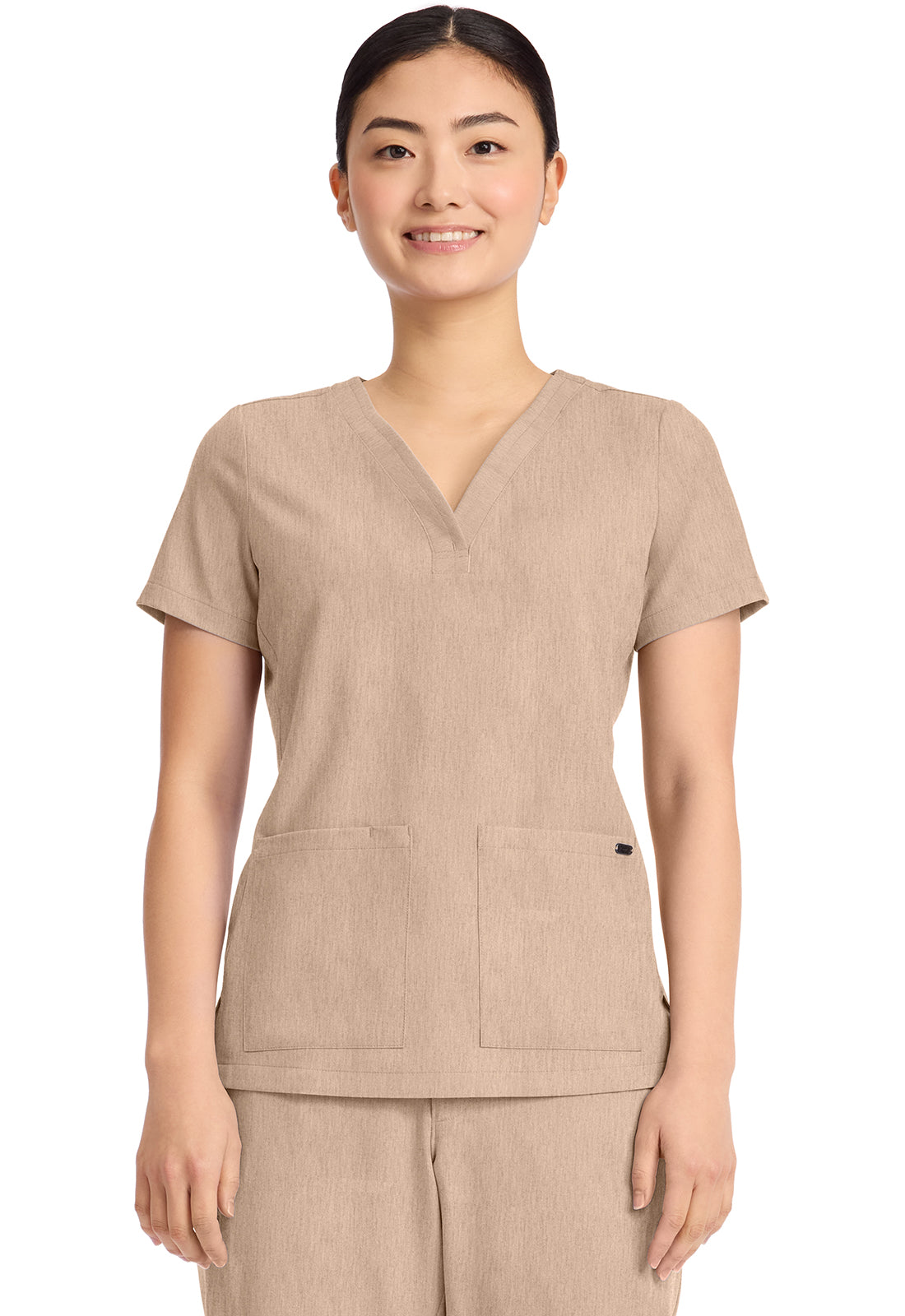 Women's 3-Pocket Y-Neck Top(Quest) by Healing Hands-Desert Taupe