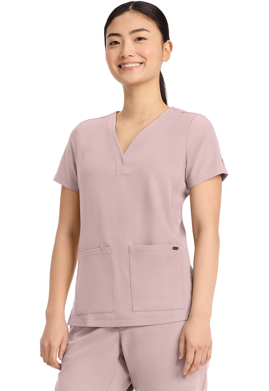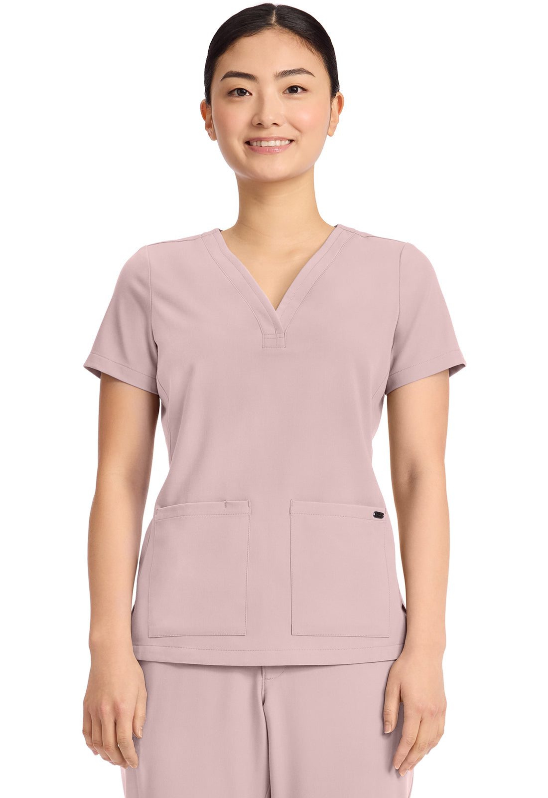 Women's 3-Pocket Y-Neck Top(Quest) by Healing Hands-Pink Pearl