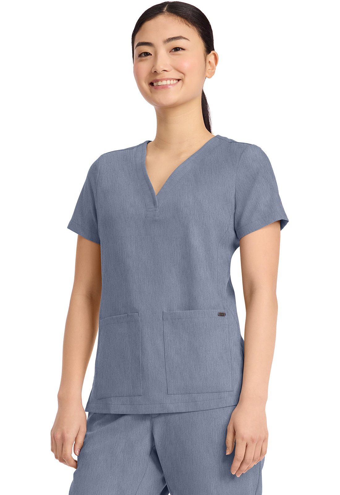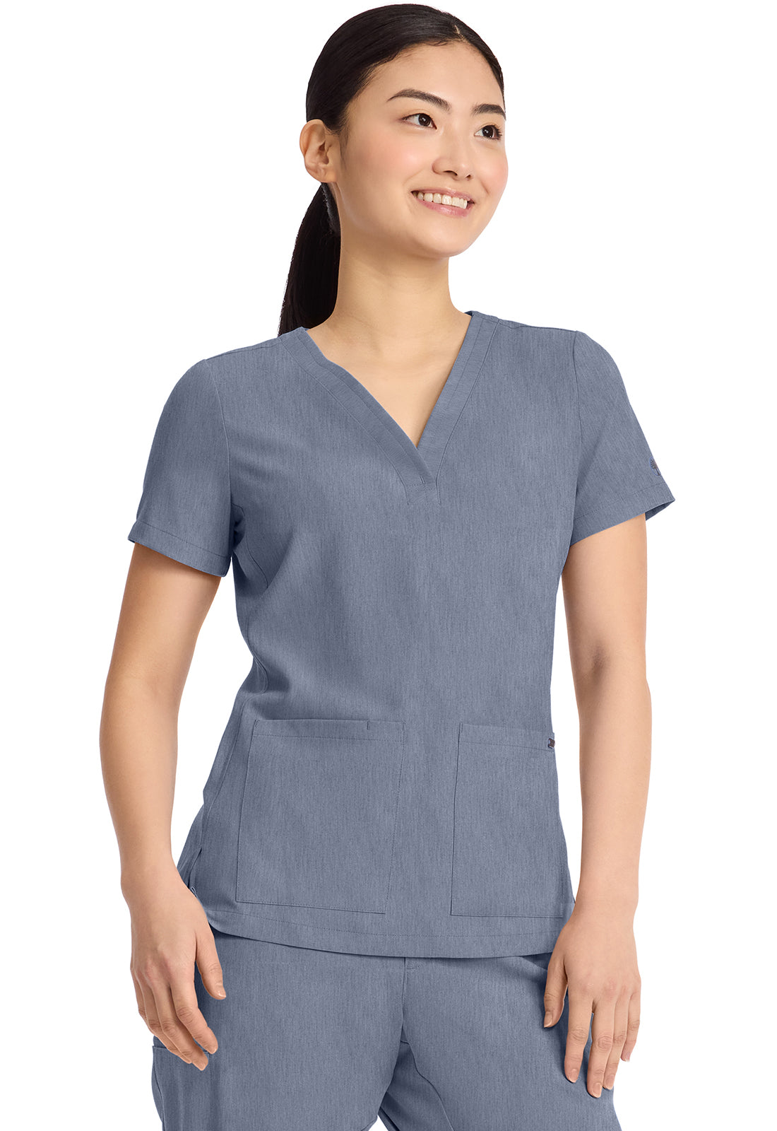 Women's 3-Pocket Y-Neck Top(Quest) by Healing Hands- Twilight Blue