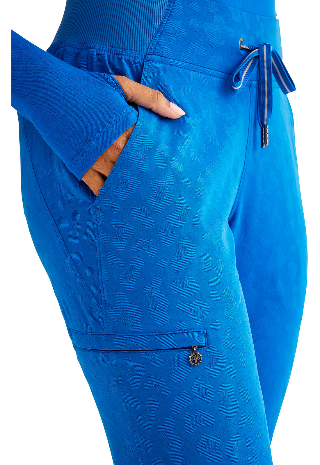 This Modern fit mid-rise pull-on jogger has a half-back rib-knit waistband with interior elastic and a tipped drawstring. There are six pockets: two front pockets, one zip security pocket on the wearer's left side, one cargo zip welt pocket and two back welt pockets. Other features include stylized back seams and rib-knit cuffs. Inseam: 28 1/2"