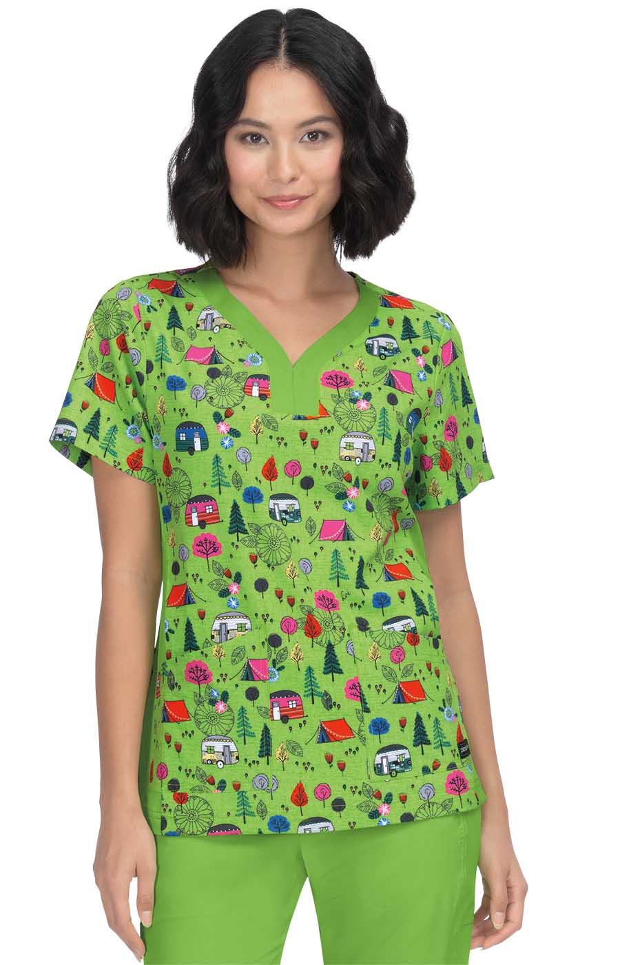 • Planet koi Aurora Women's 2-Pocket Stretch Eco-Friendly Heart-Shaped Neck Print Scrub Top