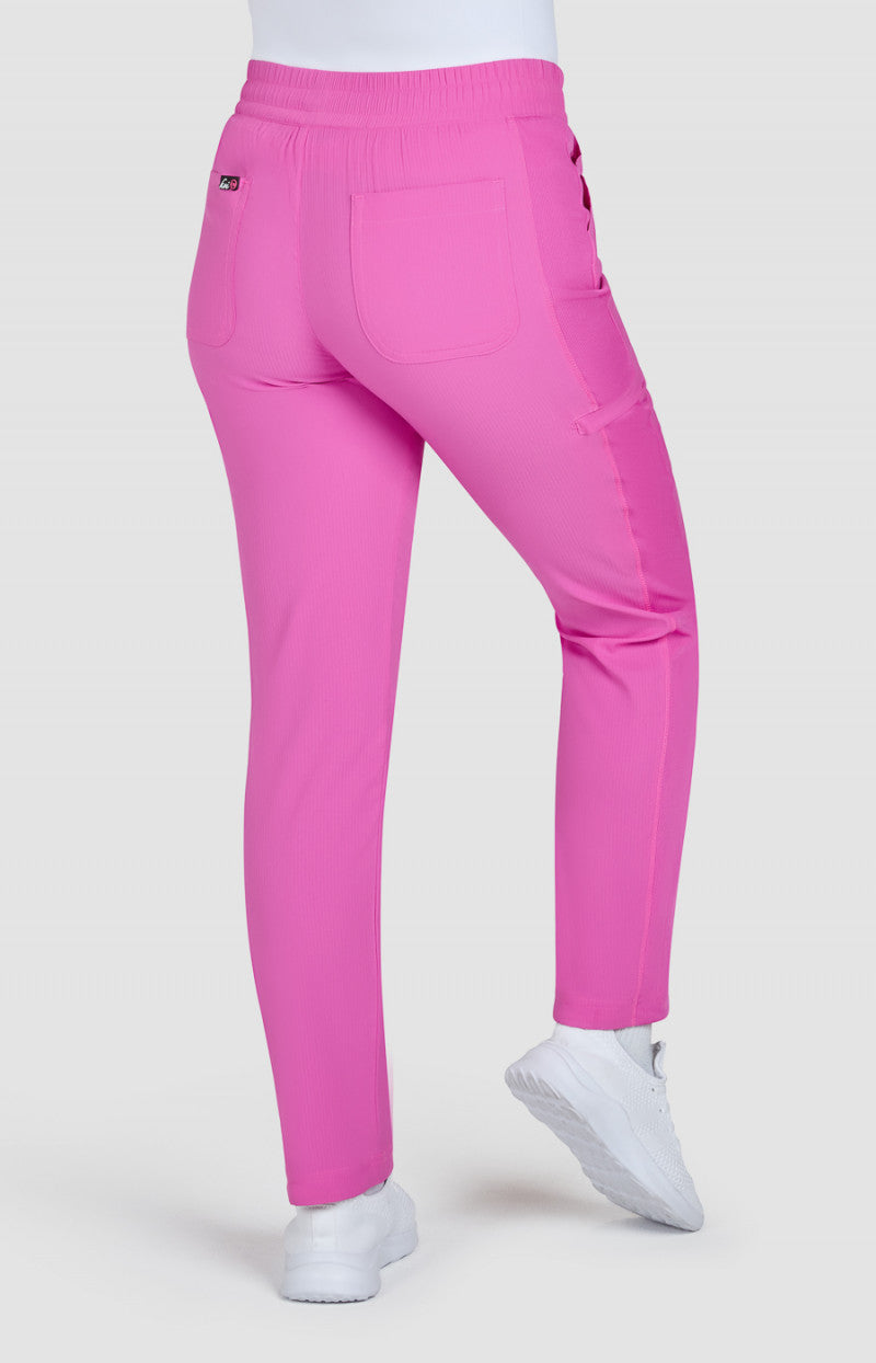 With a sleek, athletic vibe and all-day comfort, this lightweight, breathable women's scrub pant is made to move with you throughout your busy work day. Constructed with our signature koi Lite stretch dobby textured fabric, this fashion-forward pant features a wide elastic waistband with hidden inside drawcord and delivers a flattering, streamlined fit along with moisture-wicking to keep you cool and dry all shift long. An adjustable cinch at the hem lets you personalize the fit and length. Contemporary fit.
