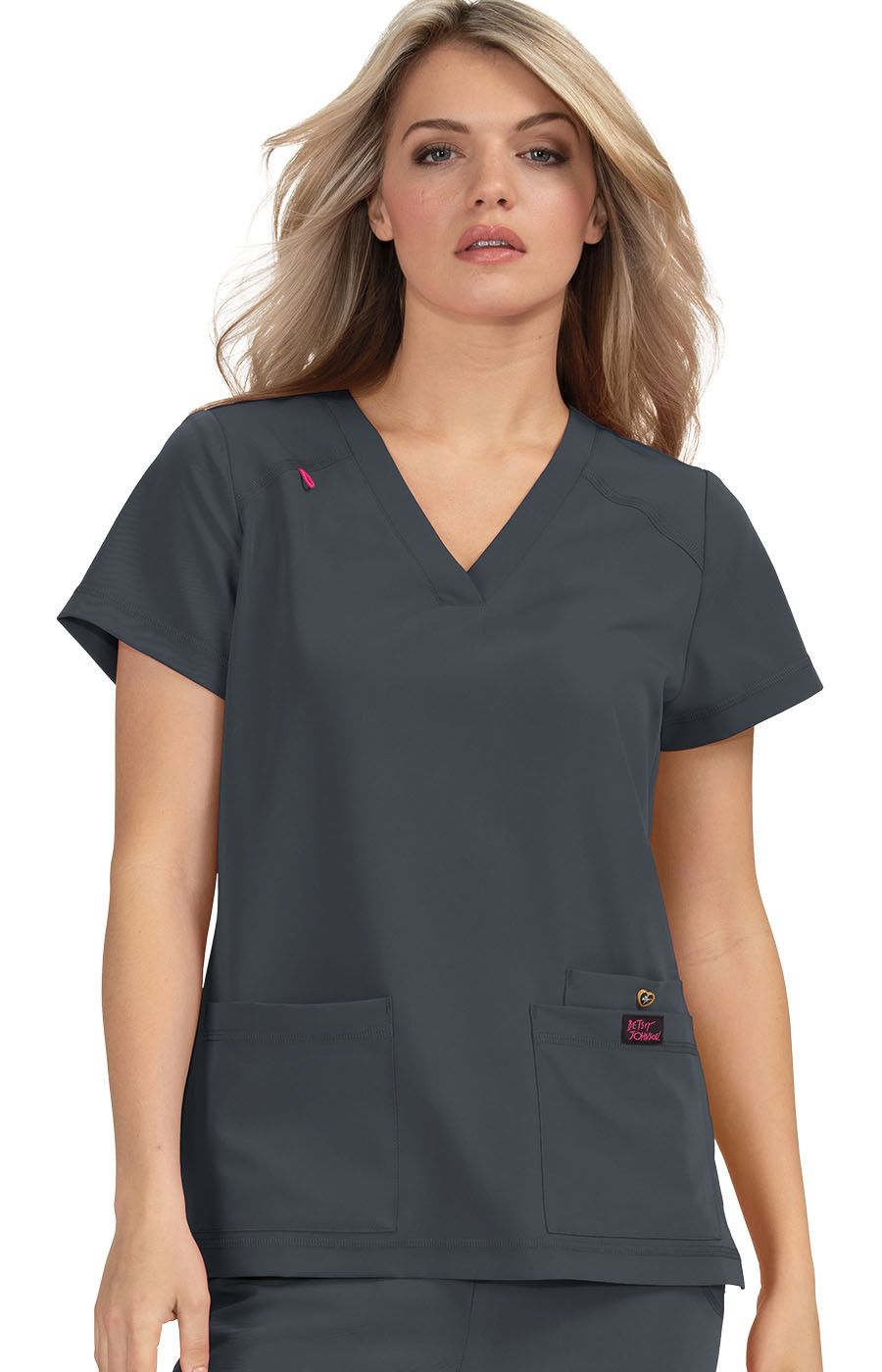 Stand out in this modern scrub top from Betsey Johnson.