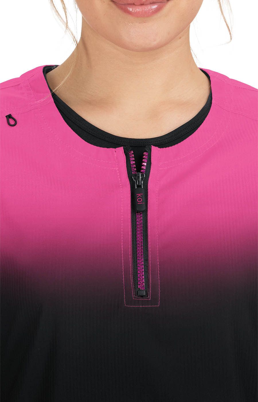 Ultra fashionable ombre top with stylish zipper-front neck. Pairs great with our ombre utility bags.