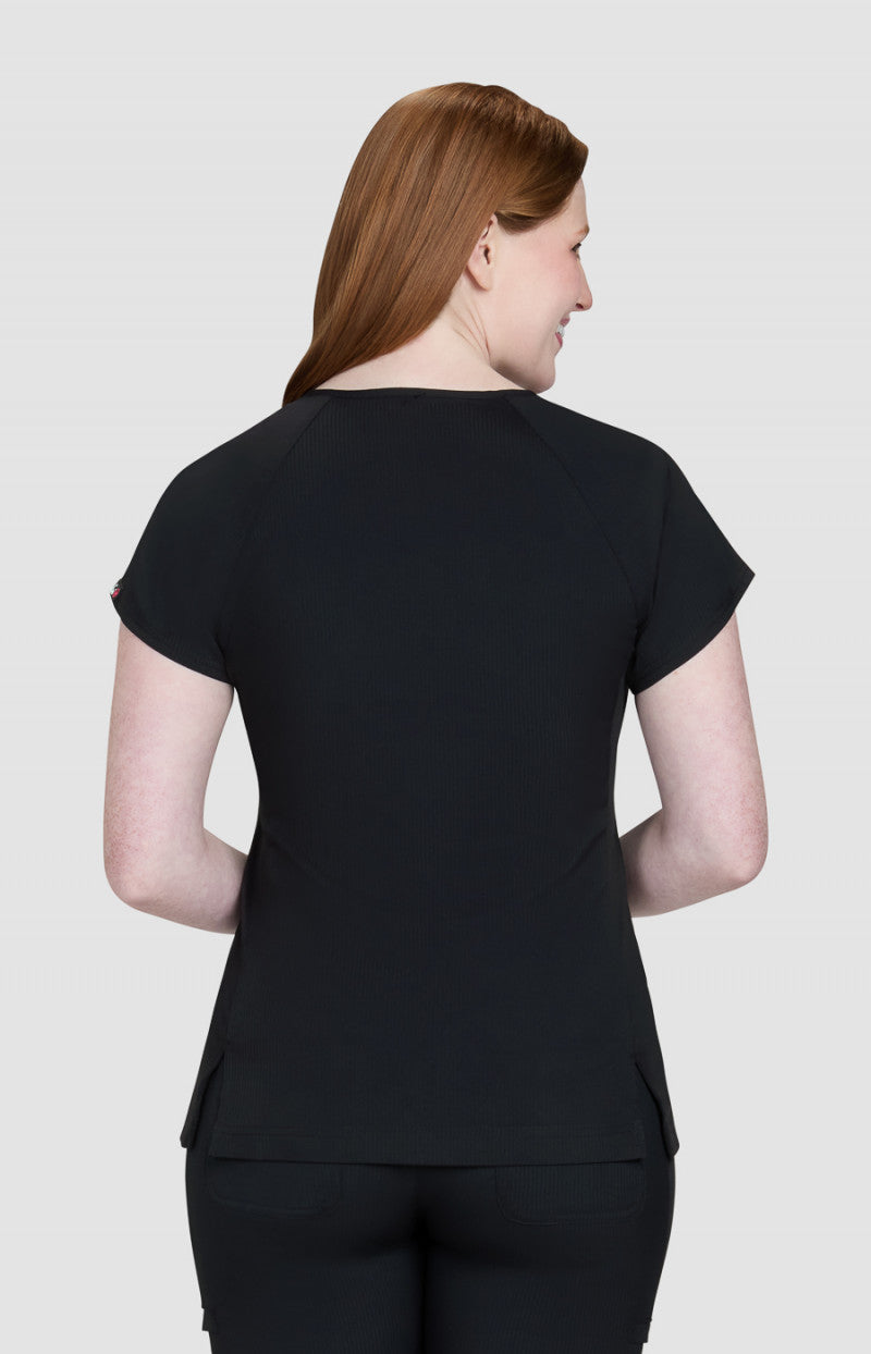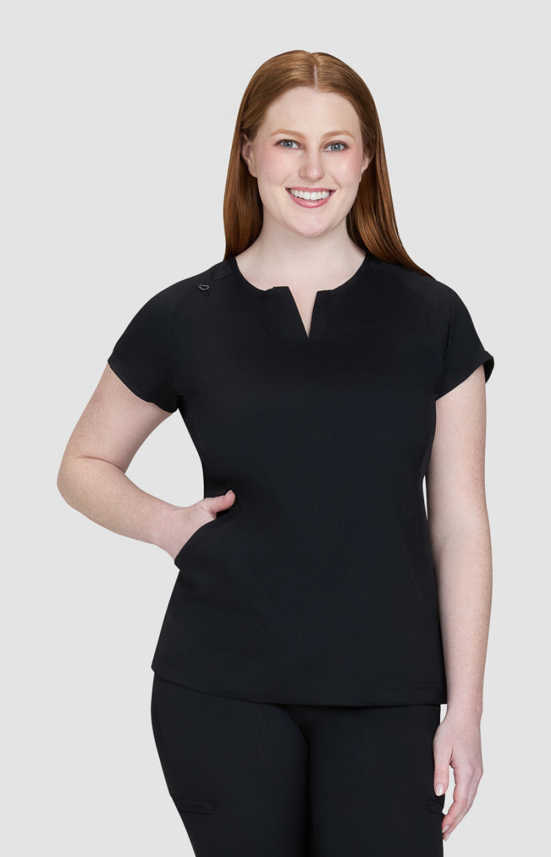 You will love the look and feel of our modern, athletic koi Lite Lilias scrub top. Perfect for any medical and dental environment, this lightweight top is crafted with our signature koi Lite textured dobby fabric, delivering breathable comfort with a polished finish. It features a unique and stylish sweetheart split v-neckline and raglan cap sleeves for a feminine touch and rib-knit side panels for enhanced mobility. This top is destined to be a go-to essential in your work wardrobe rotation.
