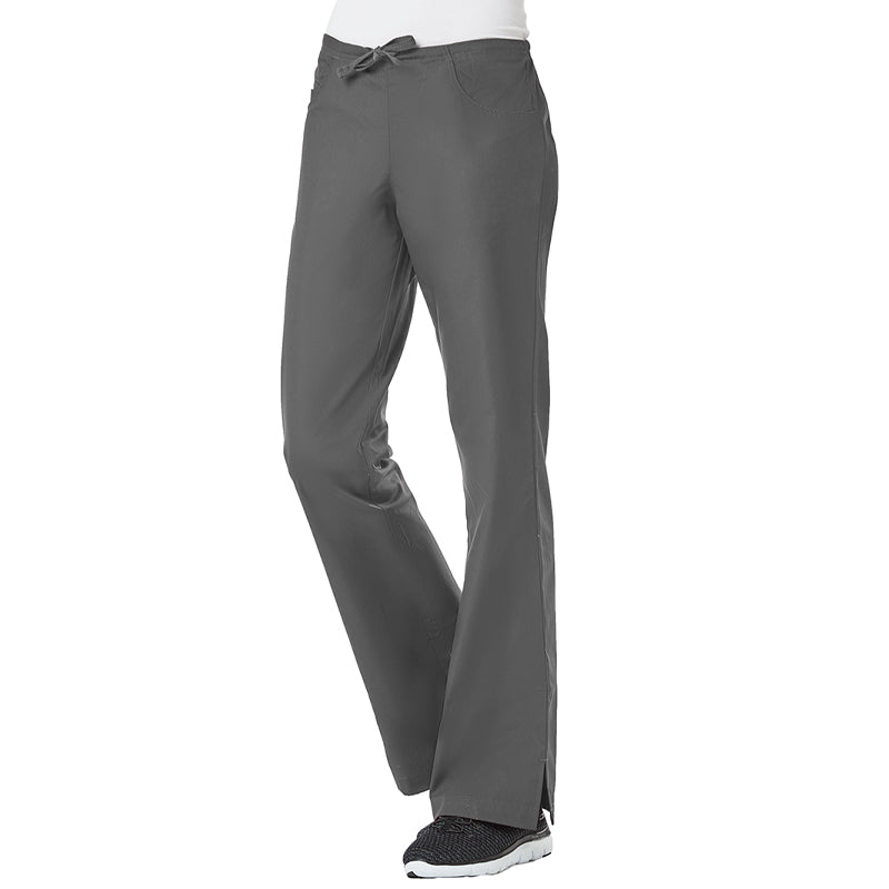 • Ladies flare leg with flat front and elastic back waist