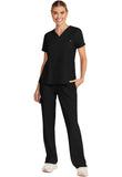 The Billie v-neck scrub top includes one welt chest pocket with a pretty printed pocket bag. Back darts provide fit and shaping. There is a curved hem with side vents for ease of movement. Thanks to the design, this style looks good worn tucked or untucked. The soft four-way stretch fabric includes moisture wicking for added comfort. Modern fit. Center back length (size Small): 25"