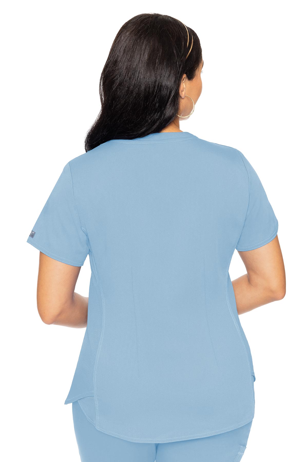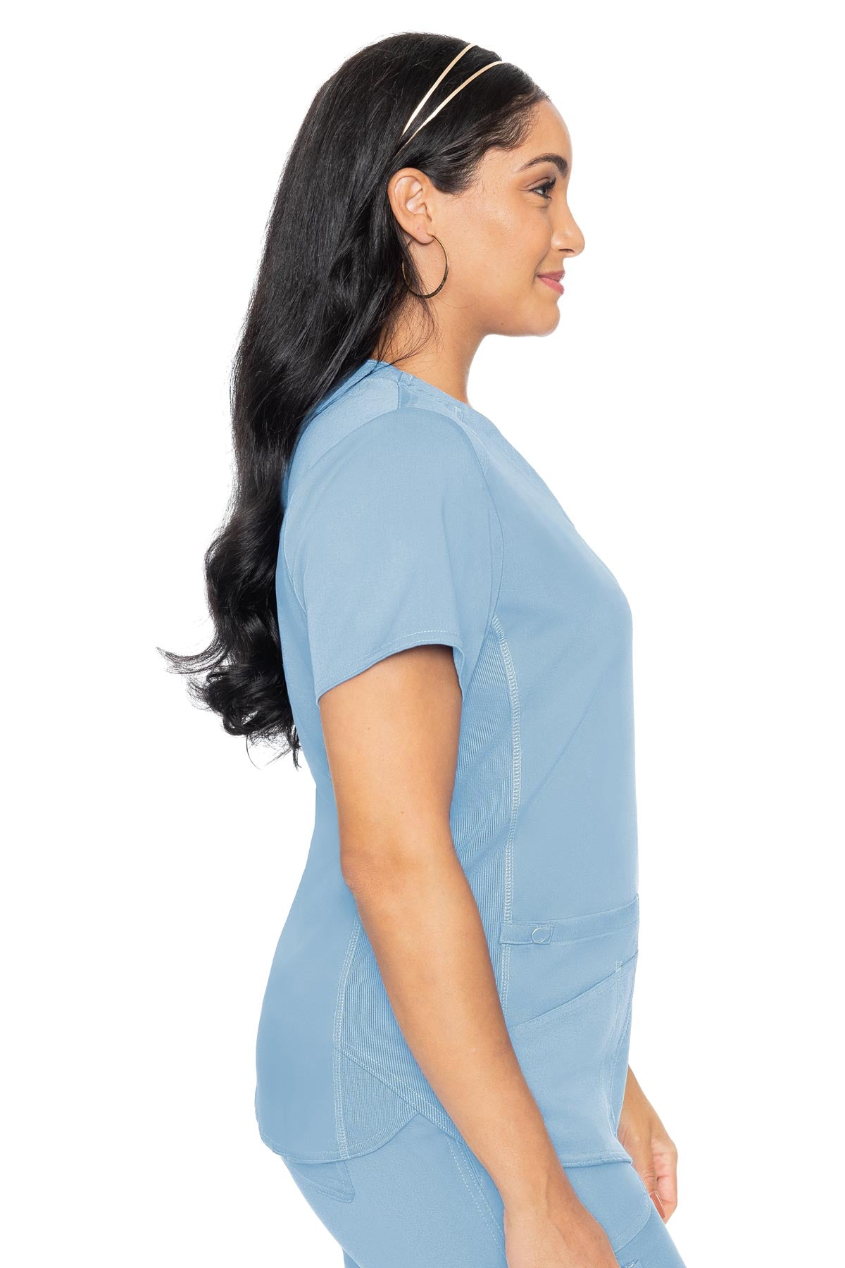 • Designed to fit and flatter all body shapes and sizes, this scrub top is everything you want in scrubs and more. A simple silhouette is enhanced with the addition of a classic shirttail hem. Rib knit side panels add comfort and ease of movement, while their overlapping design adds sporty flair.