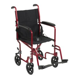 WHEELCHAIR, TRANSPORT LIGHTWEIGHT ALUM RED 19"