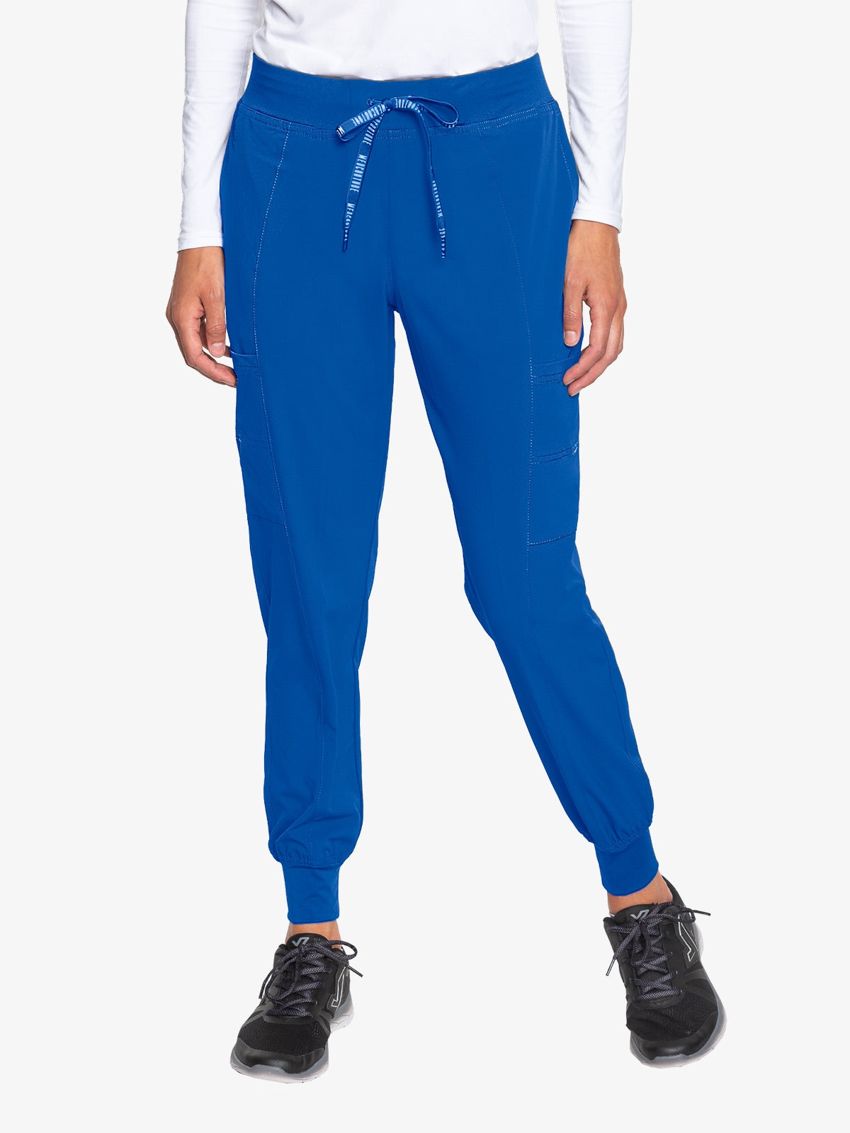 Level up your scrub game with these sleek joggers. An elastic waistband with an outer drawcord lets you adjust the fit. The elastic cuffs feel comfortable and relaxed.
