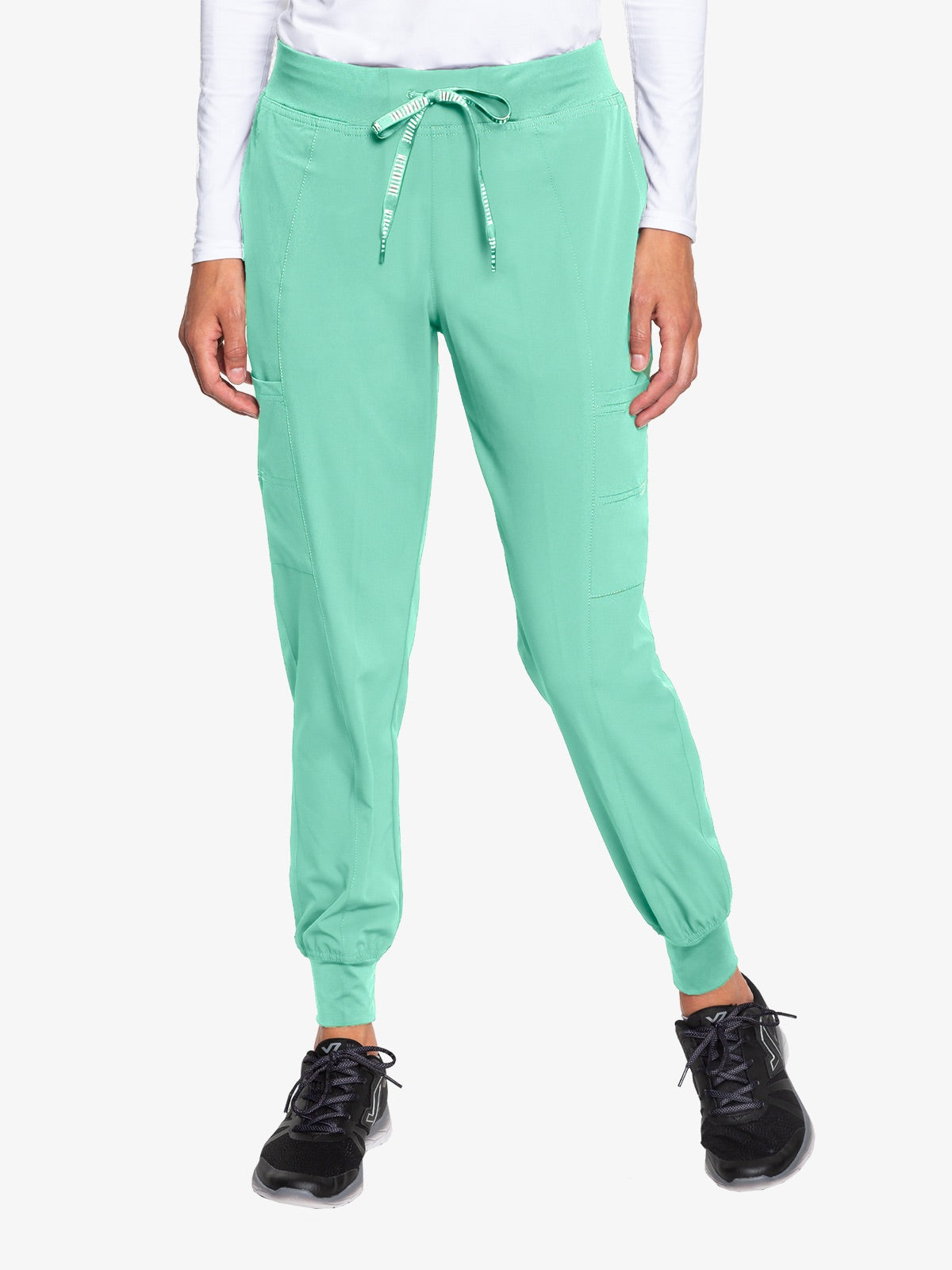 Level up your scrub game with these sleek joggers. An elastic waistband with an outer drawcord lets you adjust the fit. The elastic cuffs feel comfortable and relaxed.