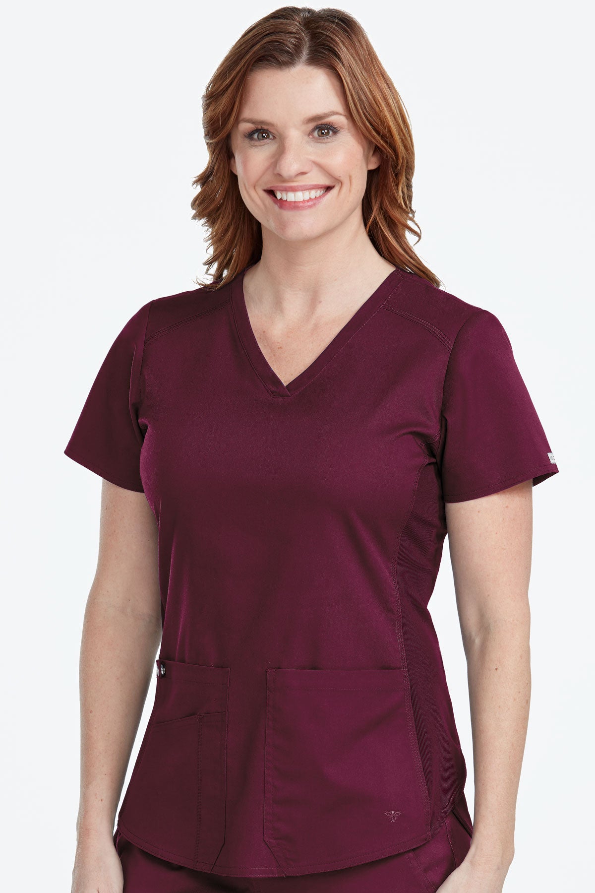 • Designed to fit and flatter all body shapes and sizes, this scrub top is everything you want in scrubs and more. A simple silhouette is enhanced with the addition of a classic shirttail hem. Rib knit side panels add comfort and ease of movement, while their overlapping design adds sporty flair.