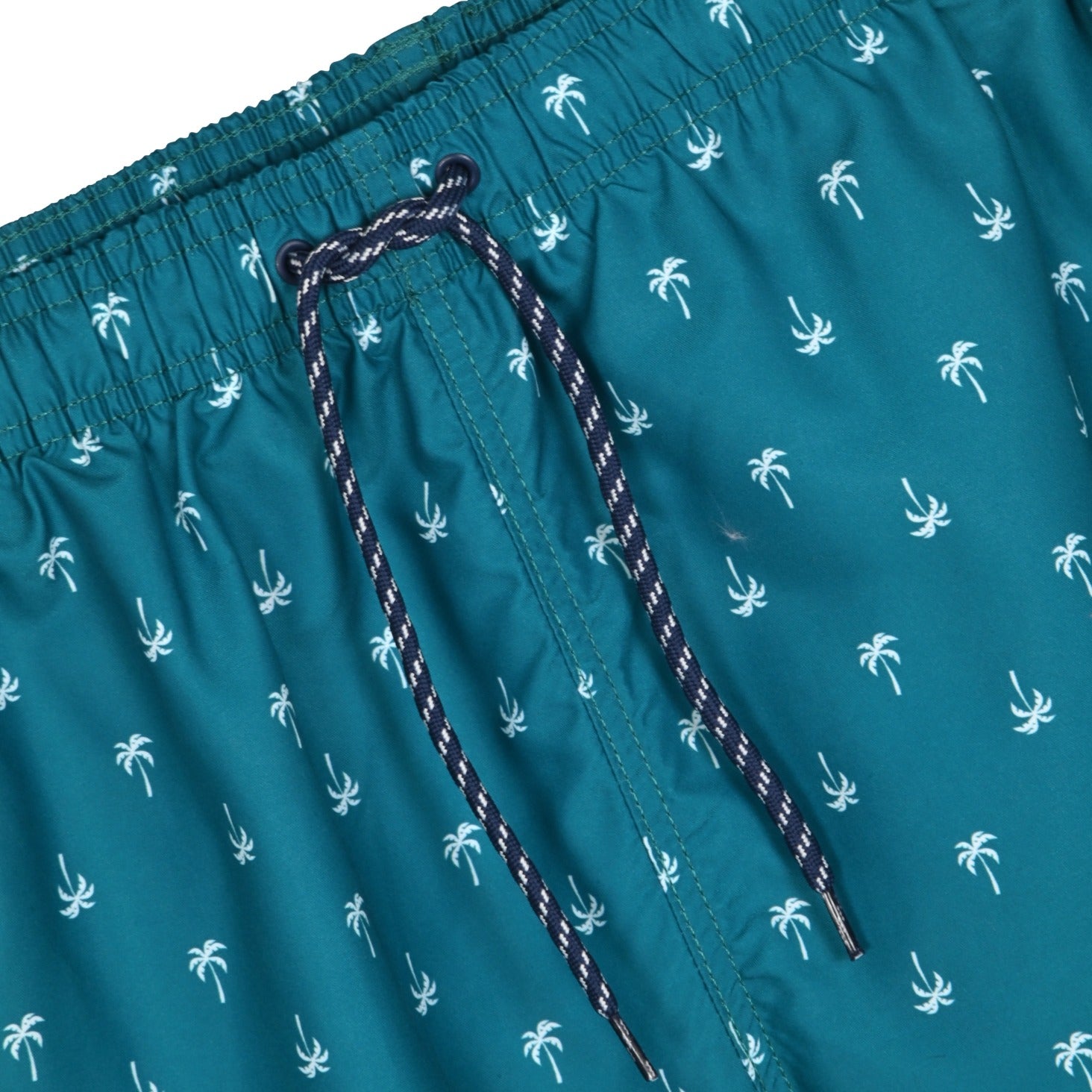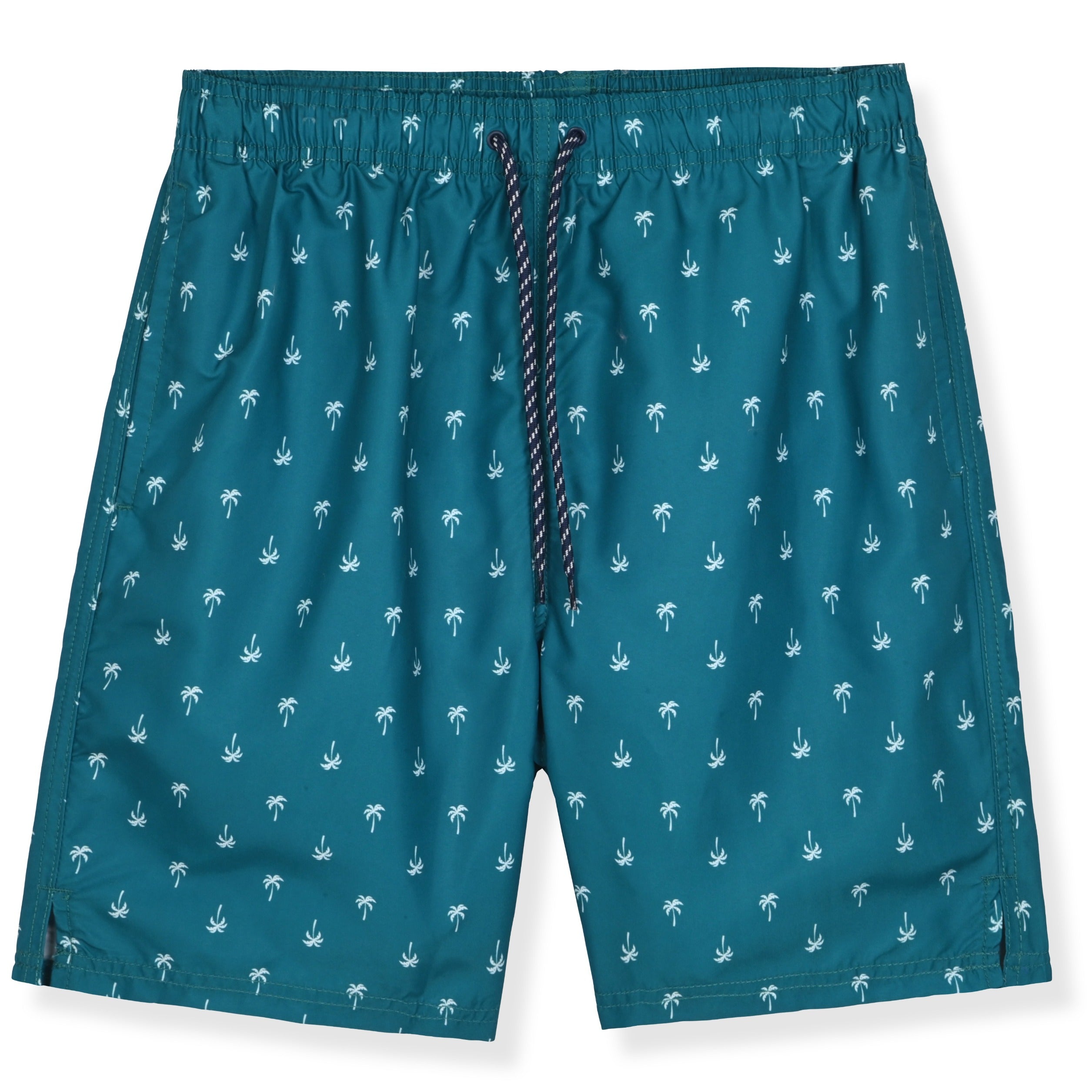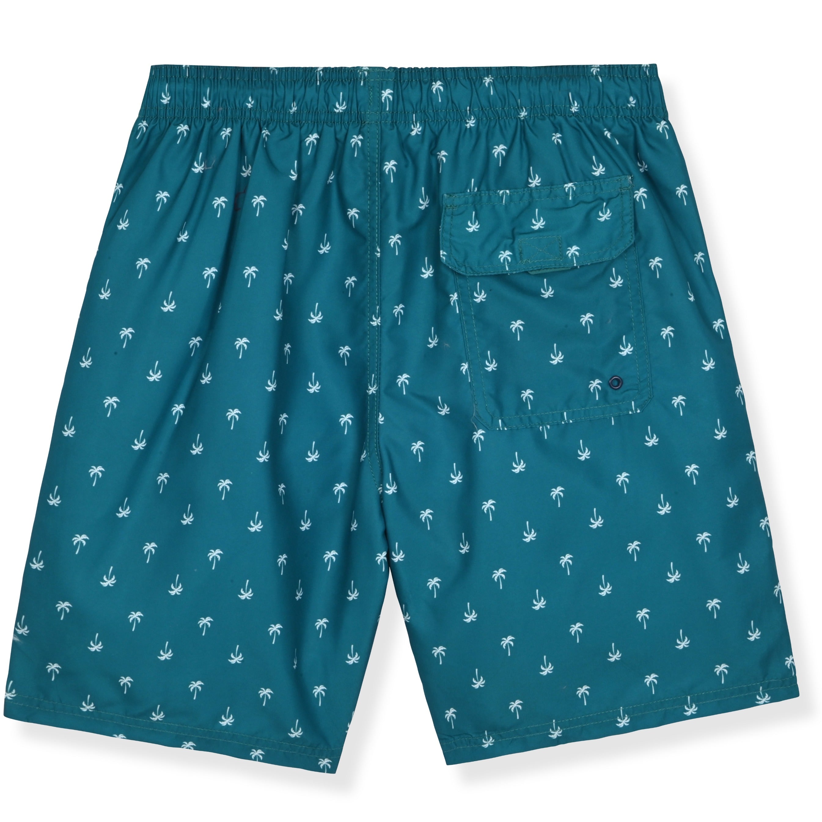 Blue Horizon Men's Printed Swim Trunks By MediChic/ Green Palm Tree