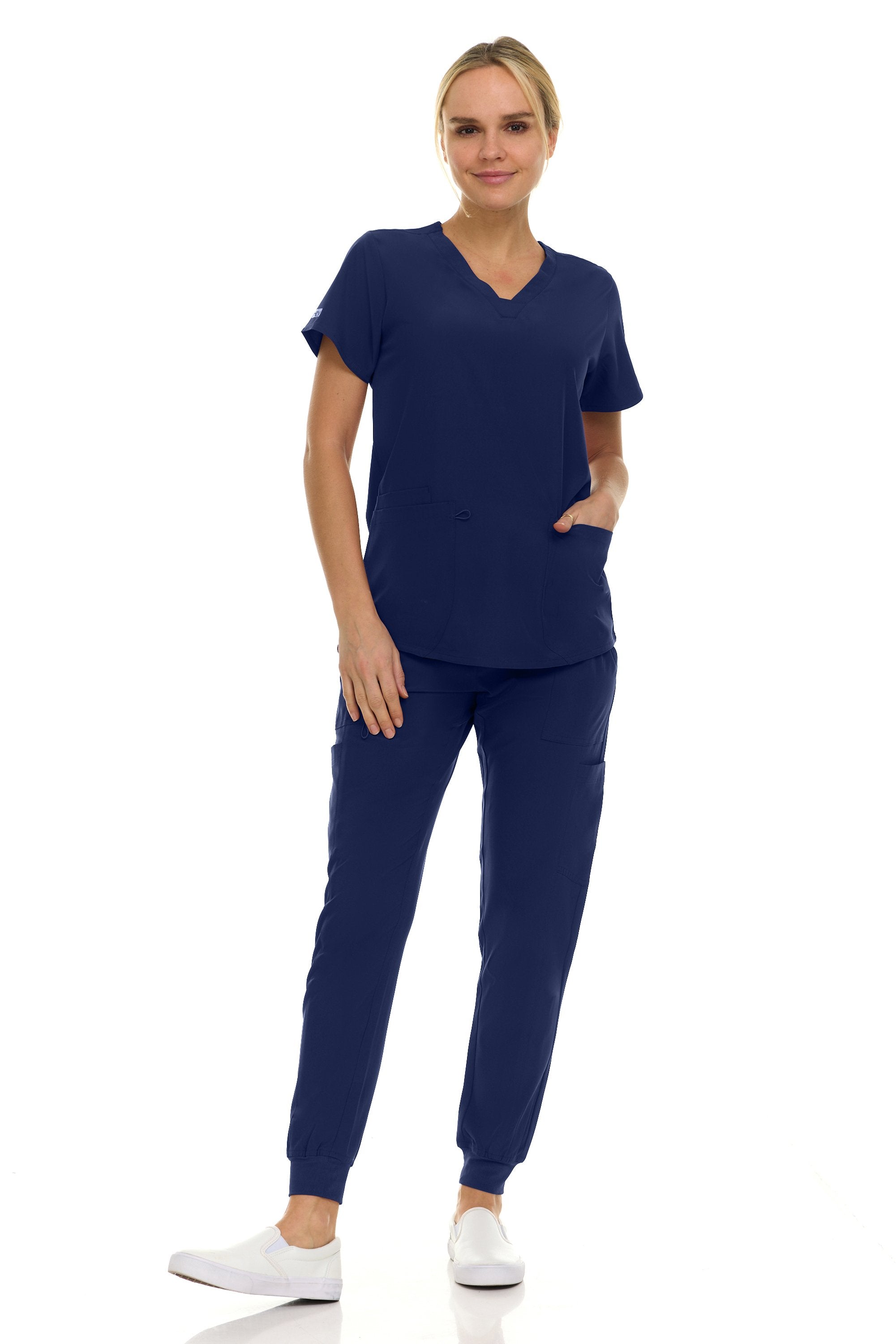 Hey Uniforms- Renee Ribbed V-Neck Top & Knit Jogger Scrub Pant XS-3XL / Navy