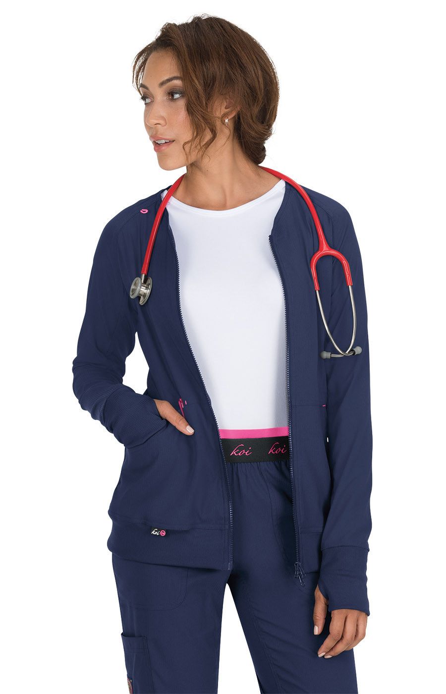 Our sporty fitted koi Lite warm-up jacket with moisture-wicking and special features you’ll love.