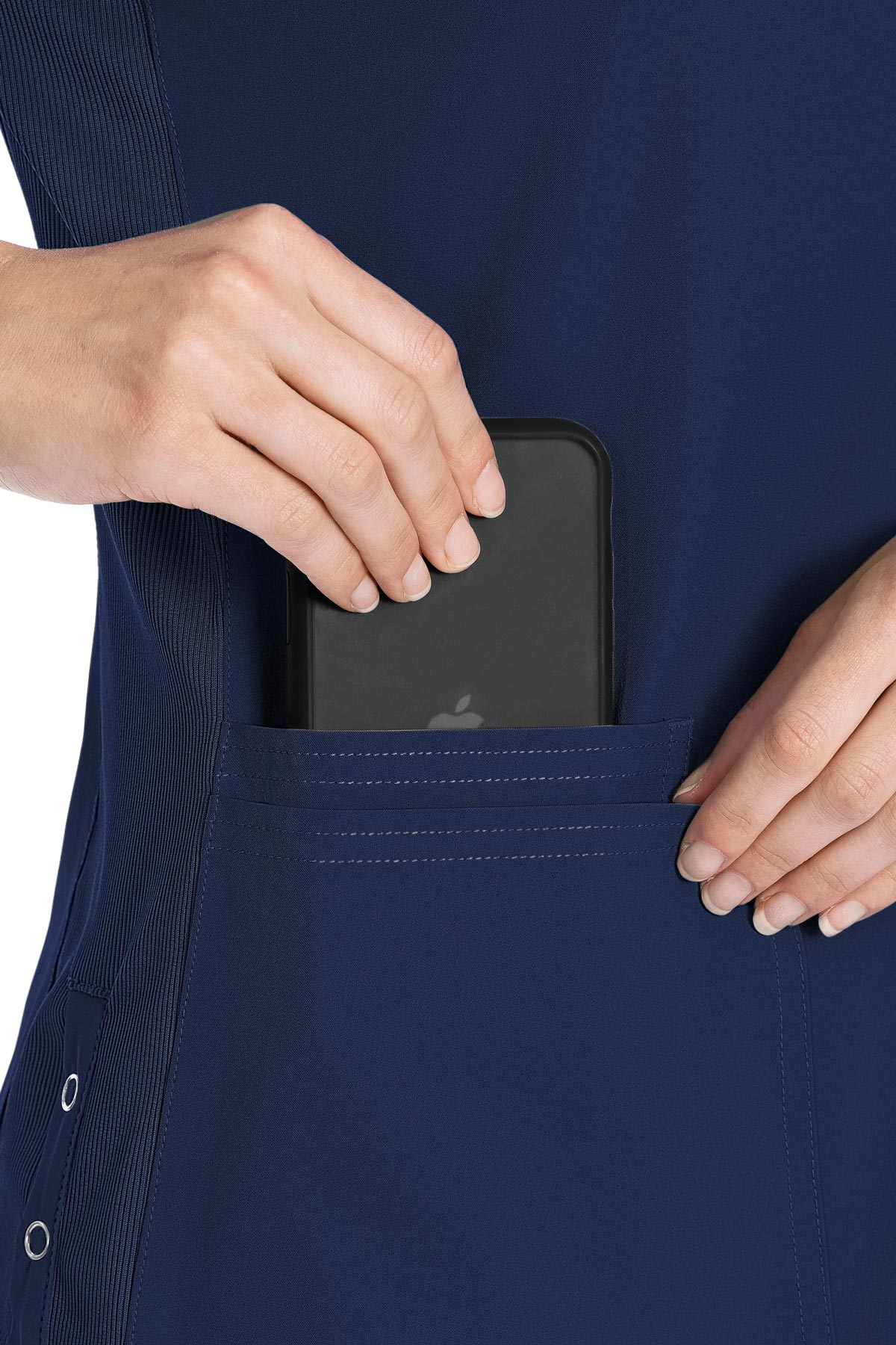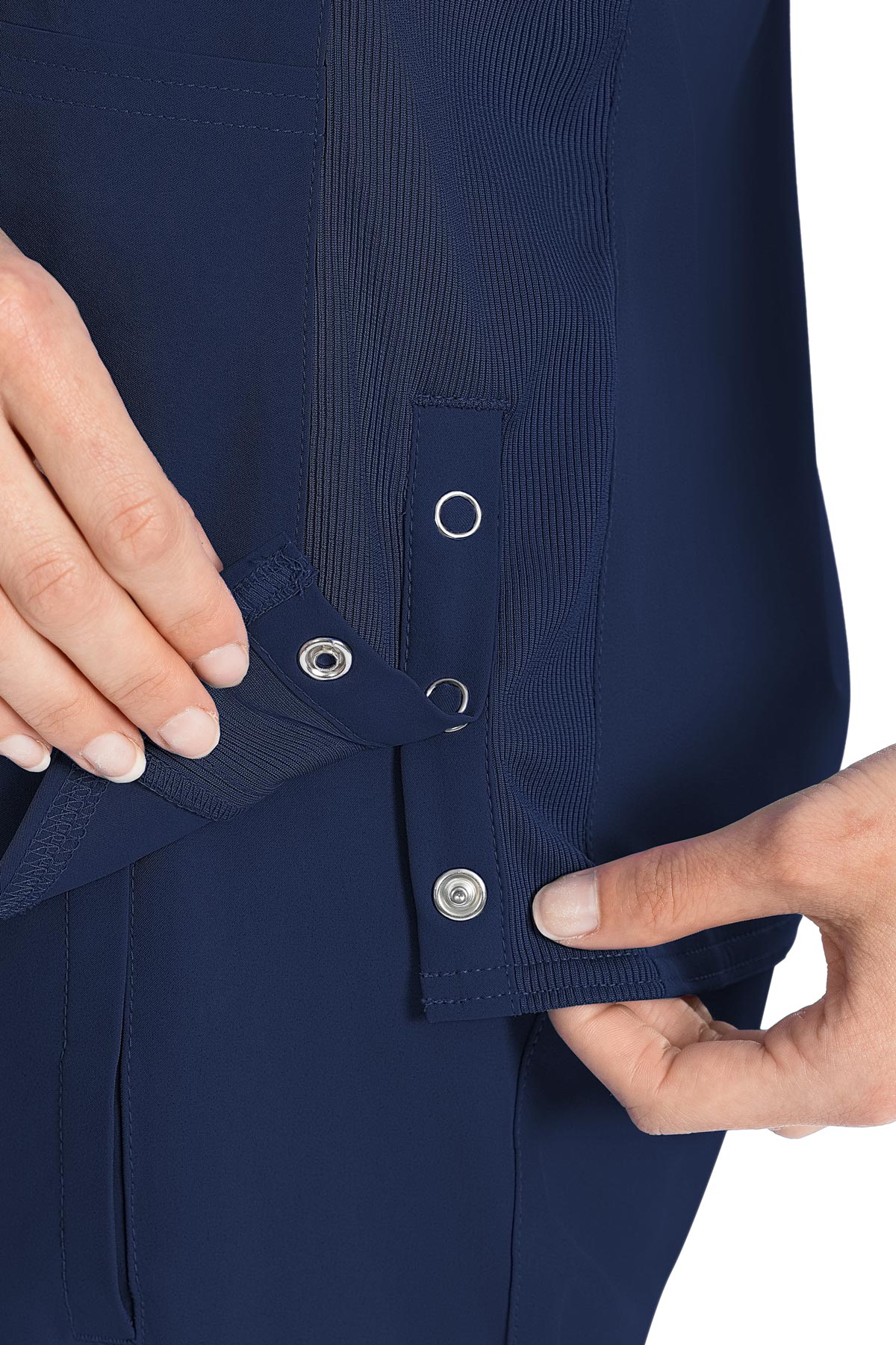 Med Couture has gone super sporty with this minimalistic V-neck top. Beautiful rib knit accents punctuate a flattering silhouette.