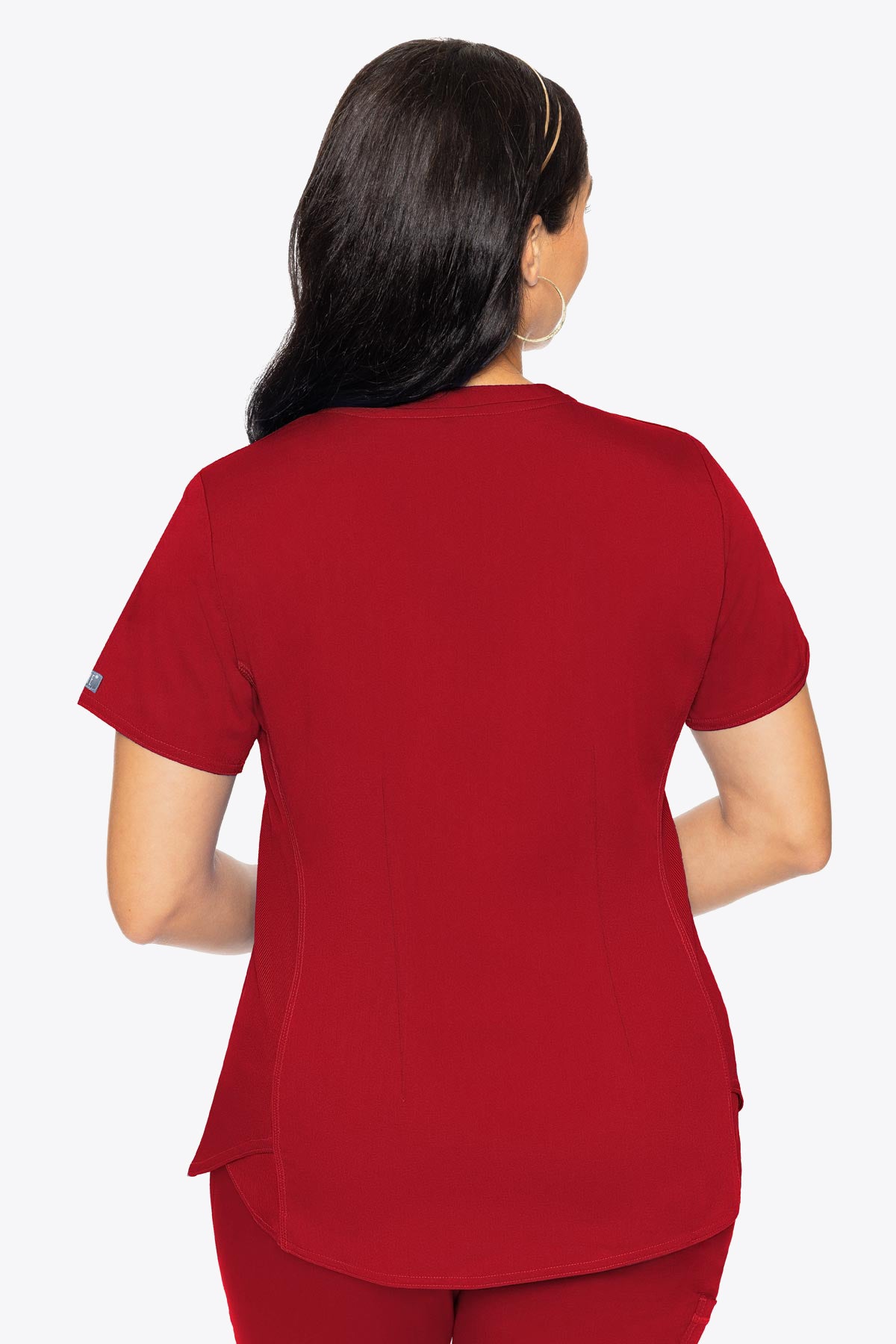 - Designed to fit and flatter all body shapes and sizes, this scrub top is everything you want in scrubs and more. A simple silhouette is enhanced with the addition of a classic shirttail hem. Rib knit side panels add comfort and ease of movement, while their overlapping design adds sporty flair.