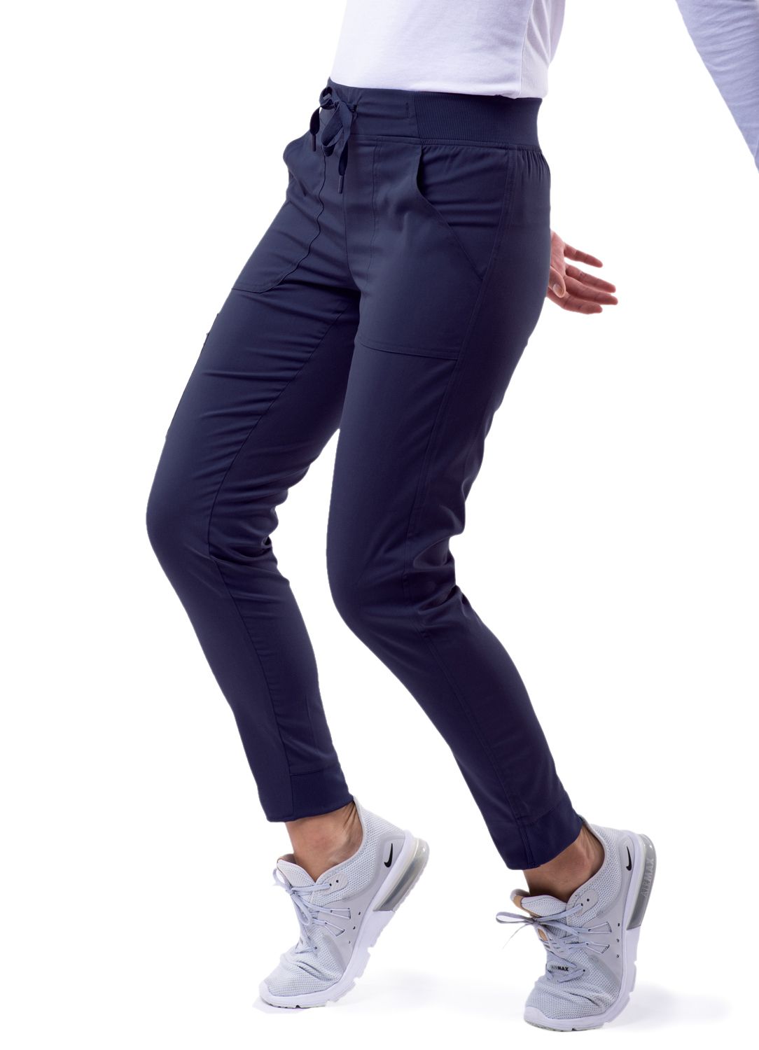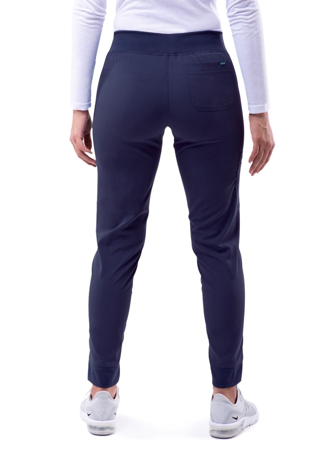 This Ultimate Yoga Jogger by Adar is the perfect pant to take you from working in a chilly medical setting to running errands. It is in a league of its own with super soft stretch fabric, order/wrinkle-resistant fabric, and a duel hem. Our duel hem features a trouser hem in the front and adds a pinch of style with a classic jogger fit hem in the back. These comfortable scrub pants sit right below the natural waist. It comes equipped with a leg zip pocket and side pockets for storage. Those 4 pockets create enough space to hold this, that, and those. Upgrade your wardrobe with this must have jogger pant.