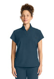 The Bella scrub top has style to spare starting with a stand-up collar and quarter zip opening with logo zipper pull. There is one welt chest pocket with a pretty printed pocket bag plus front chest seam and a curved back yoke. This scrub top is finished with an updated shirttail hem and side vents. The soft four-way stretch fabric includes moisture wicking for added comfort. Modern fit. Center back length (size Small): 25"