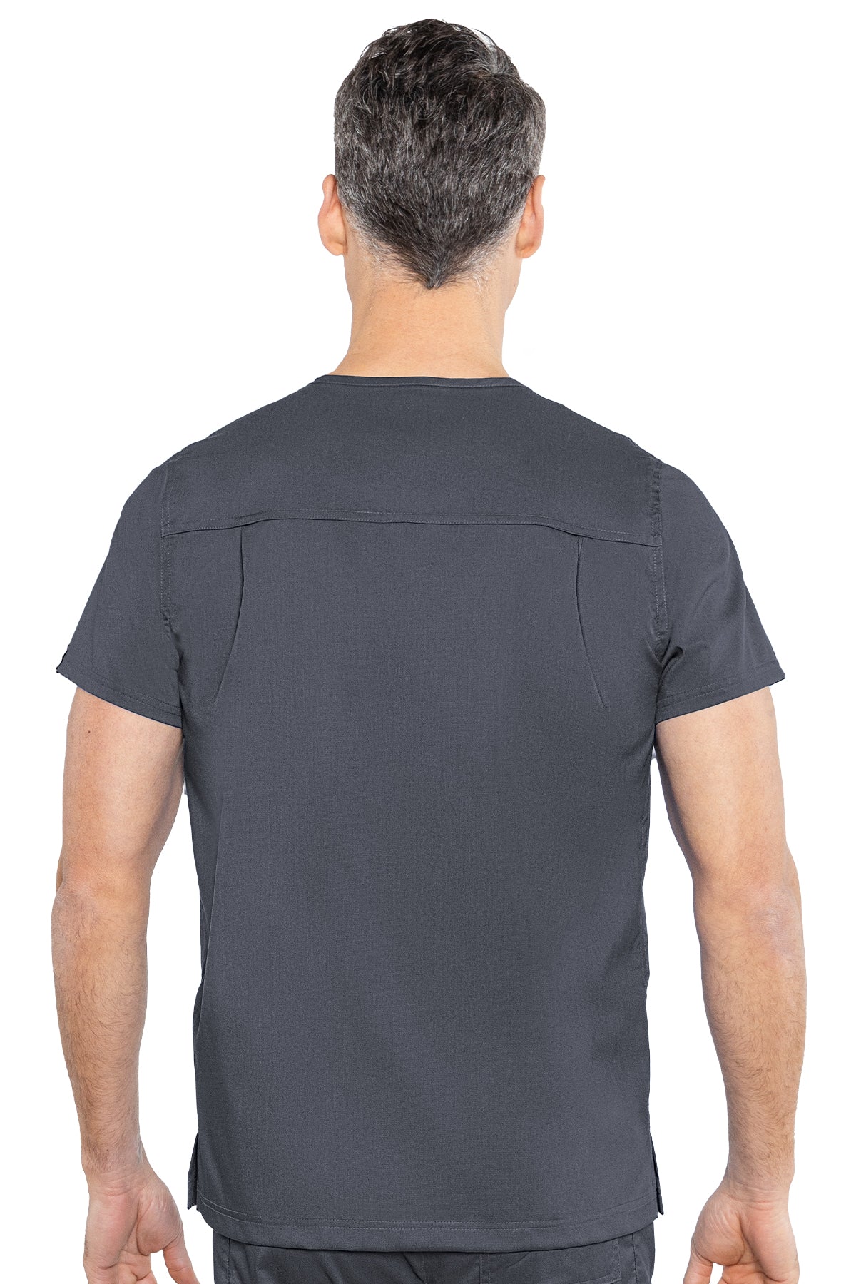- A traditional scrub top with three pockets. The welt chest pocket and two large patch pockets give you great storage.