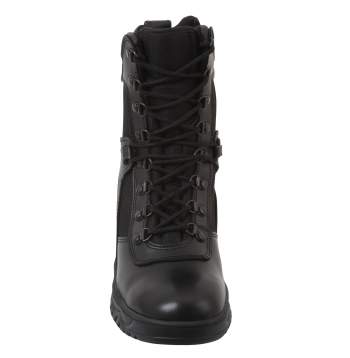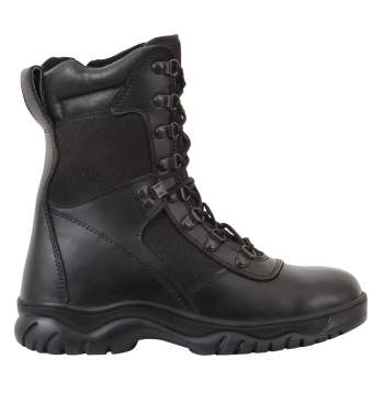 Rothco's Forced Entry Tactical Boot stands out as a top choice, equipped with features to conquer any challenge. The slip-resistant outsole ensures improved traction, preventing slips during movement. The side zipper closure with a hook and loop tab allows for swift wear without the hassle of tying and untying laces. Rustproof eyelets and a speed lace system keep your boots securely fastened. Crafted with action leather upper and full grain leather vamp, these boots boast long-lasting strength.