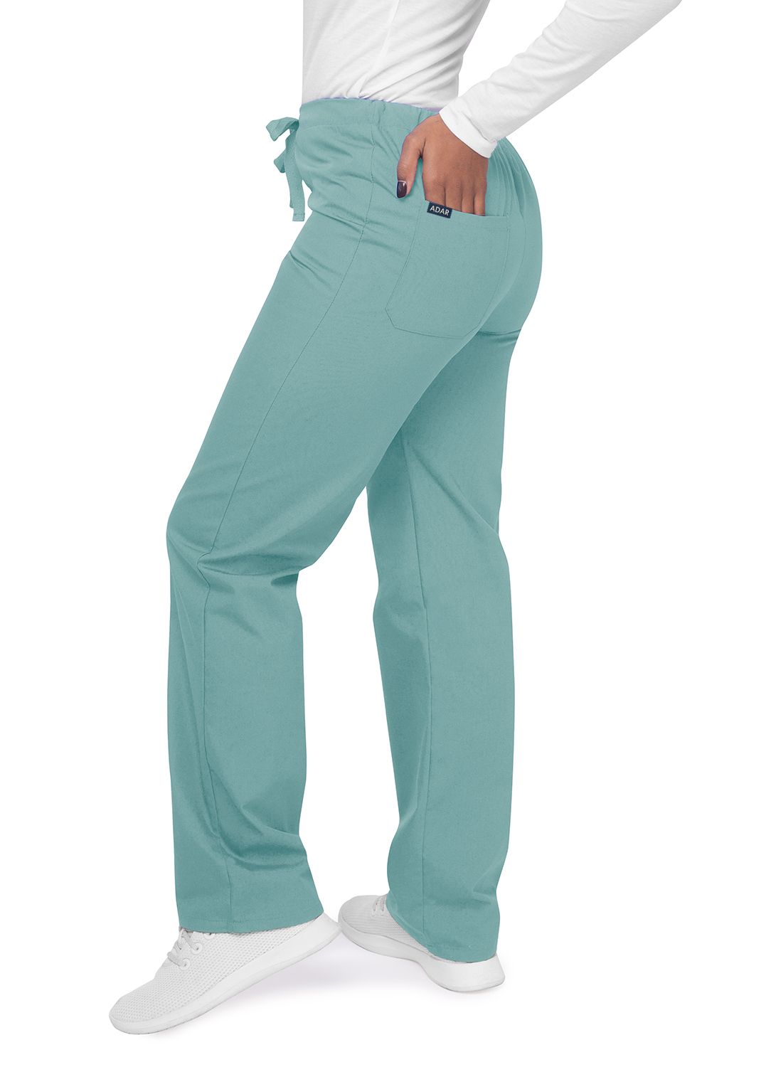• Natural-rise, tapered legs