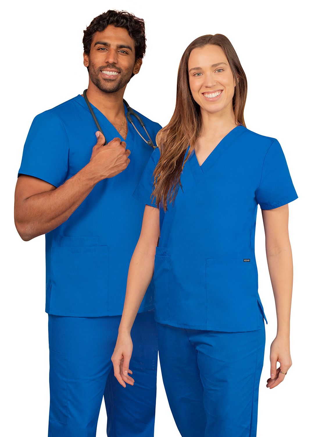 UNISEX V-NECK 2 POCKET TOP By AdarXS-5X / Regal Blue
