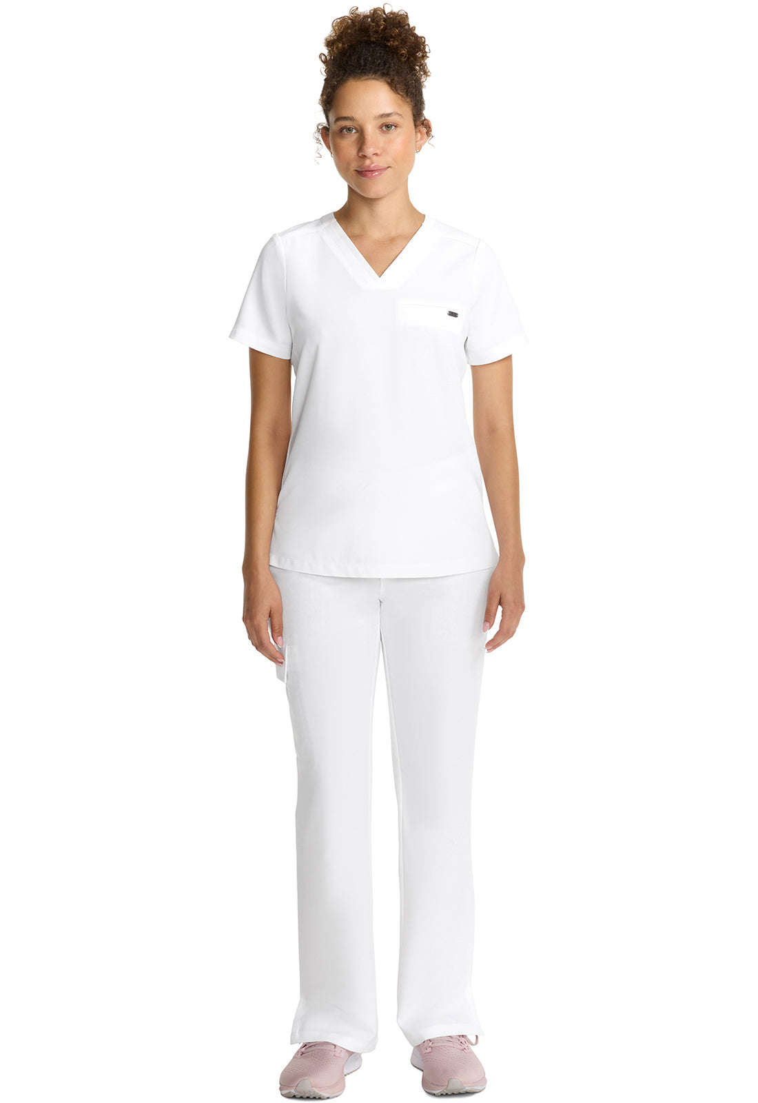 The Billie v-neck scrub top includes one welt chest pocket with a pretty printed pocket bag. Back darts provide fit and shaping. There is a curved hem with side vents for ease of movement. Thanks to the design, this style looks good worn tucked or untucked. The soft four-way stretch fabric includes moisture wicking for added comfort. Modern fit. Center back length (size Small): 25"