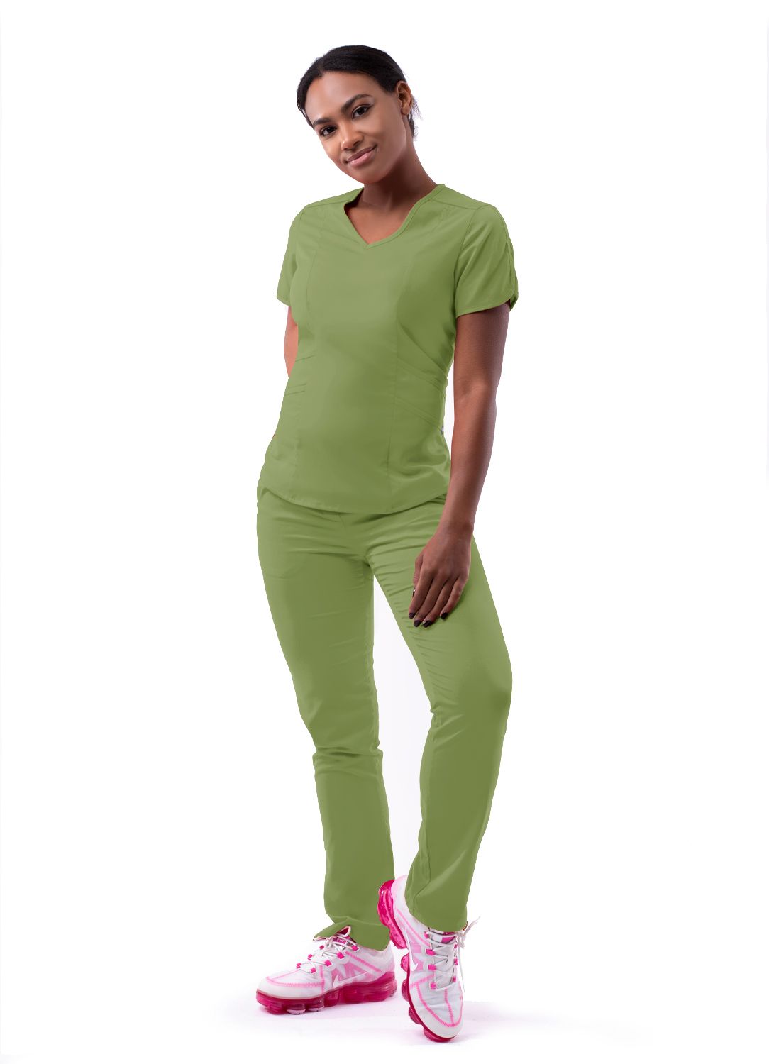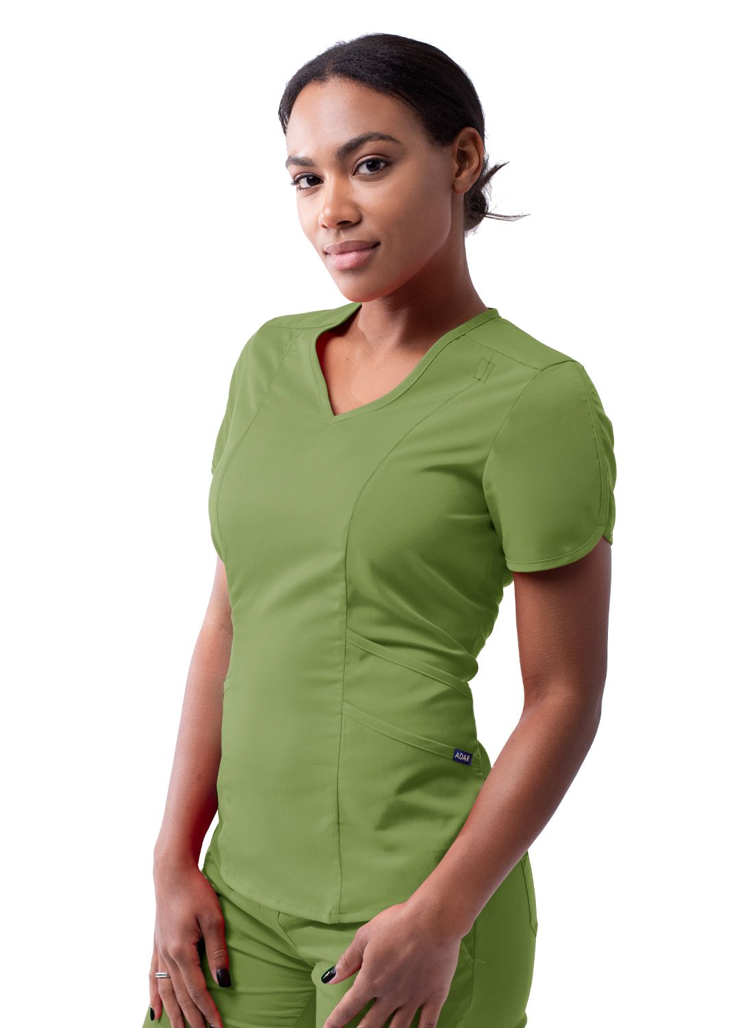 Modern V-Neck Scrub Top by Adar XXS-3XL / Spring Leaf