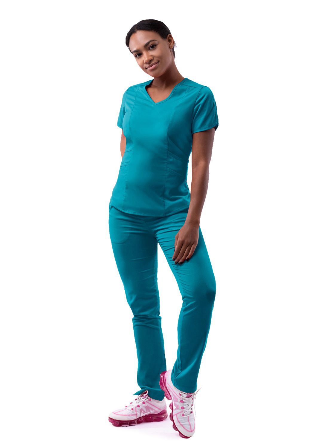 A sleek staple with flattering fit and supremely functional details, this V-neck scrub top looks professional and trendy. Our scrub top stands out with features such as odor and wrinkle resistant fabric. This powerhouse top also has the most pockets in the Pro Collection. Created with super soft fabric to get you through every shift.