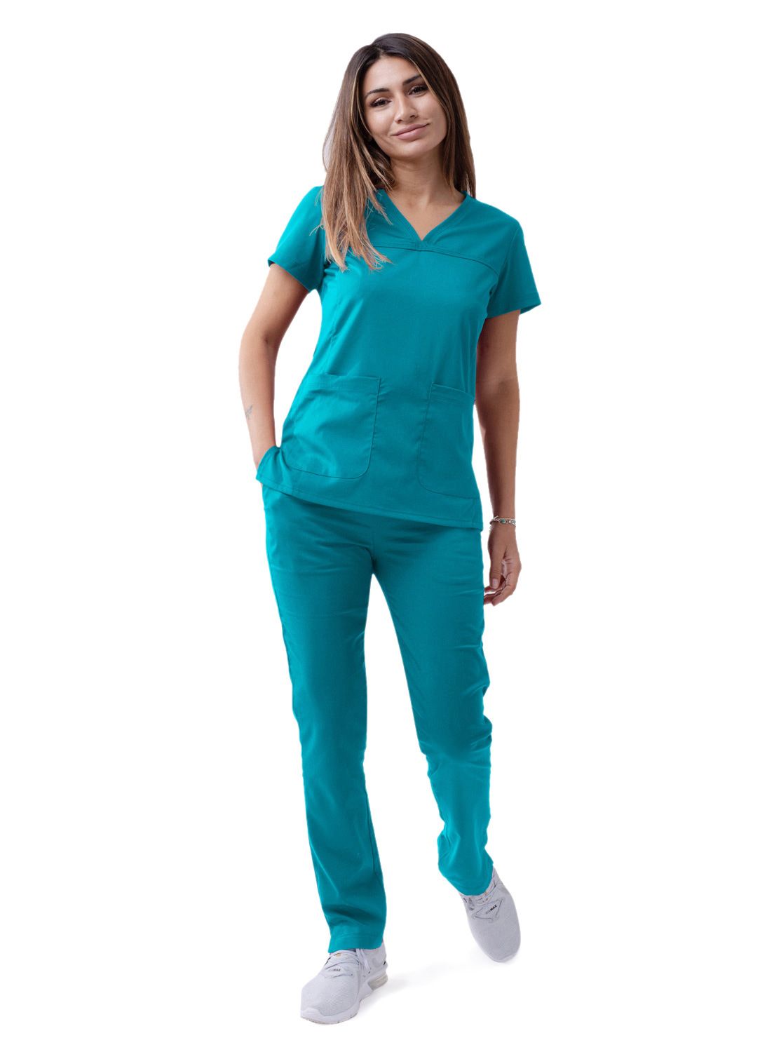 Sweetheart V-neck Scrub Top by Adar XXS-3XL / Teal Blue
