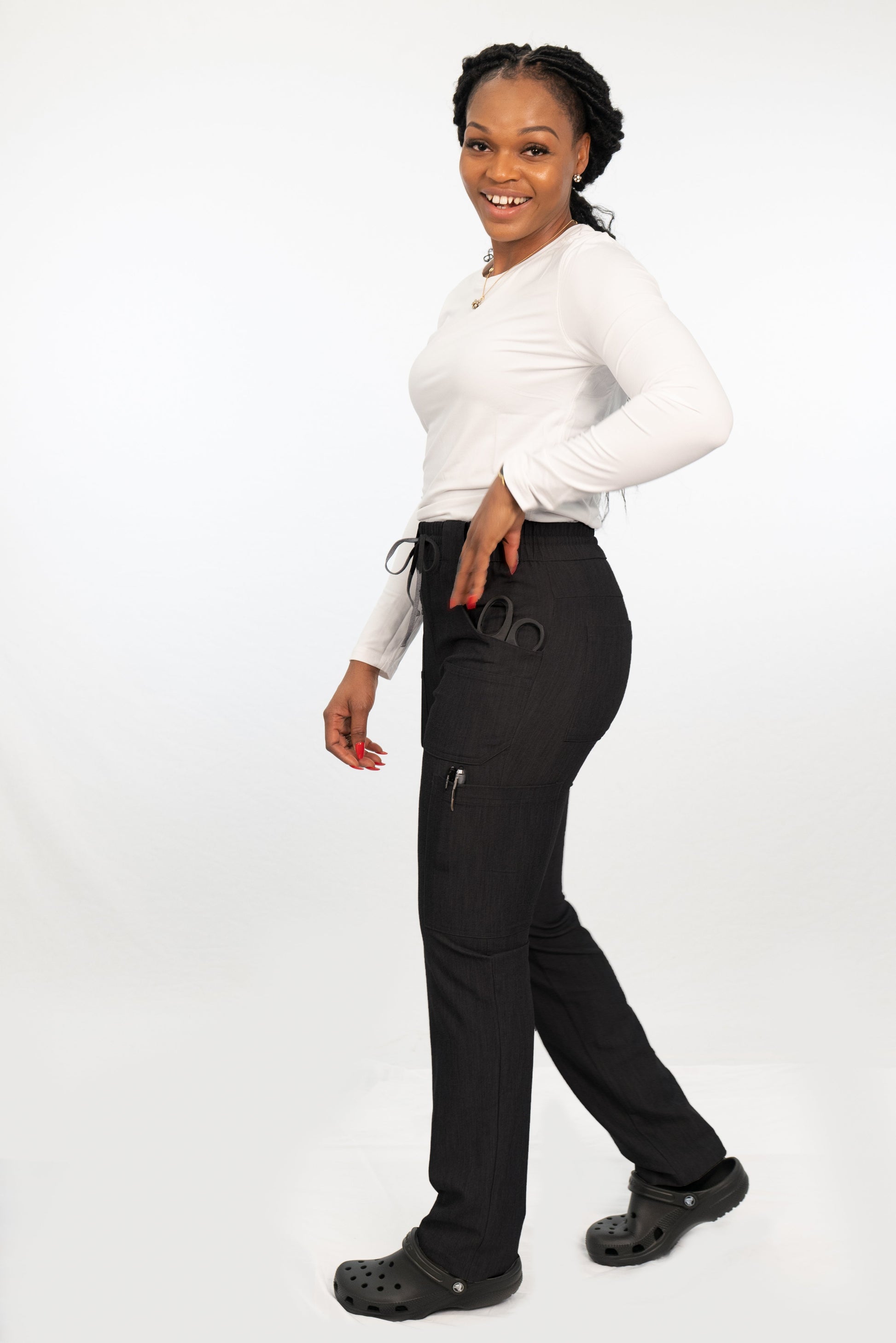 Antimicrobial Mary High Waist 6 pocket Cargo Pants By Wozo XXS-5XL / Black