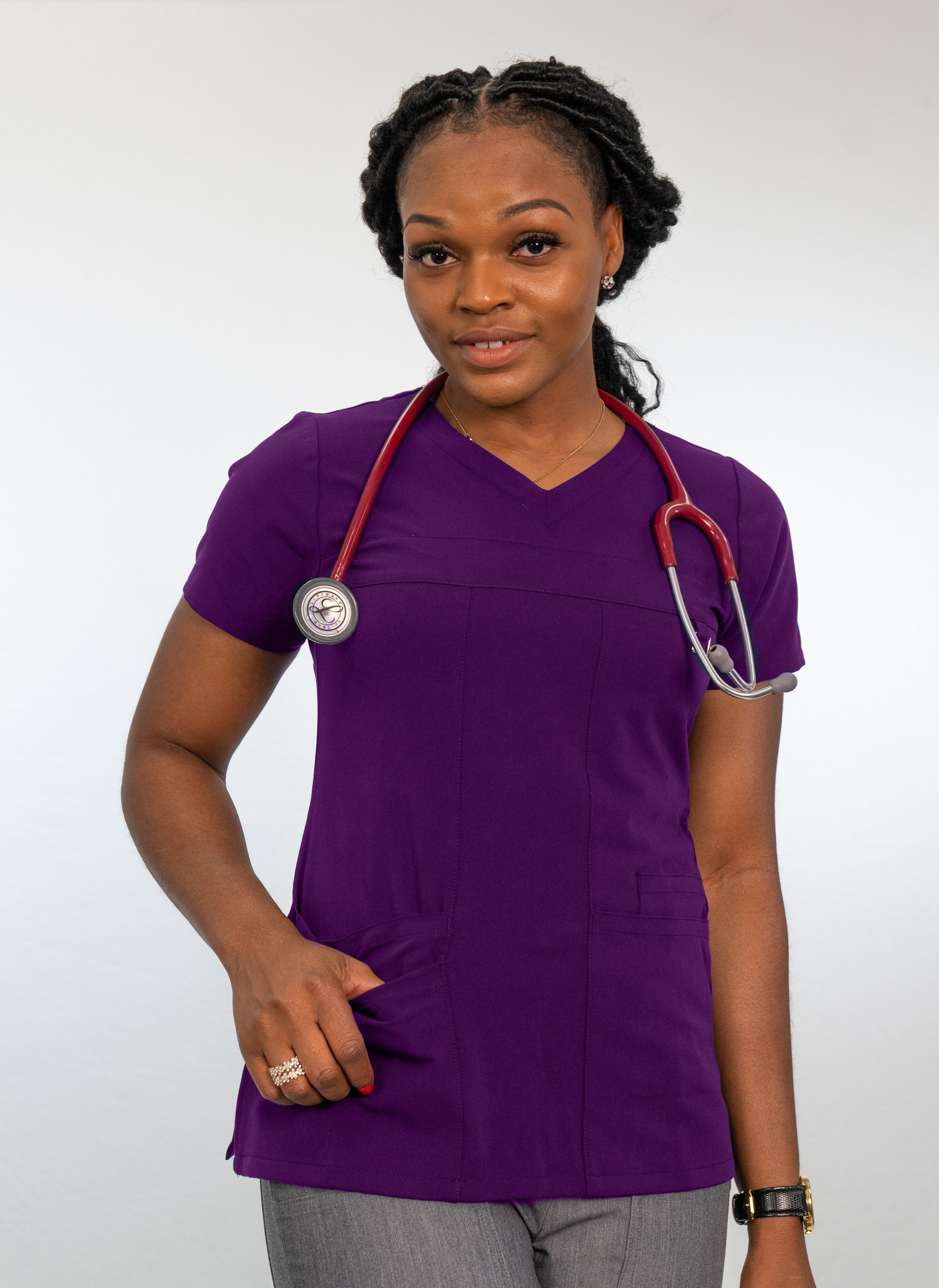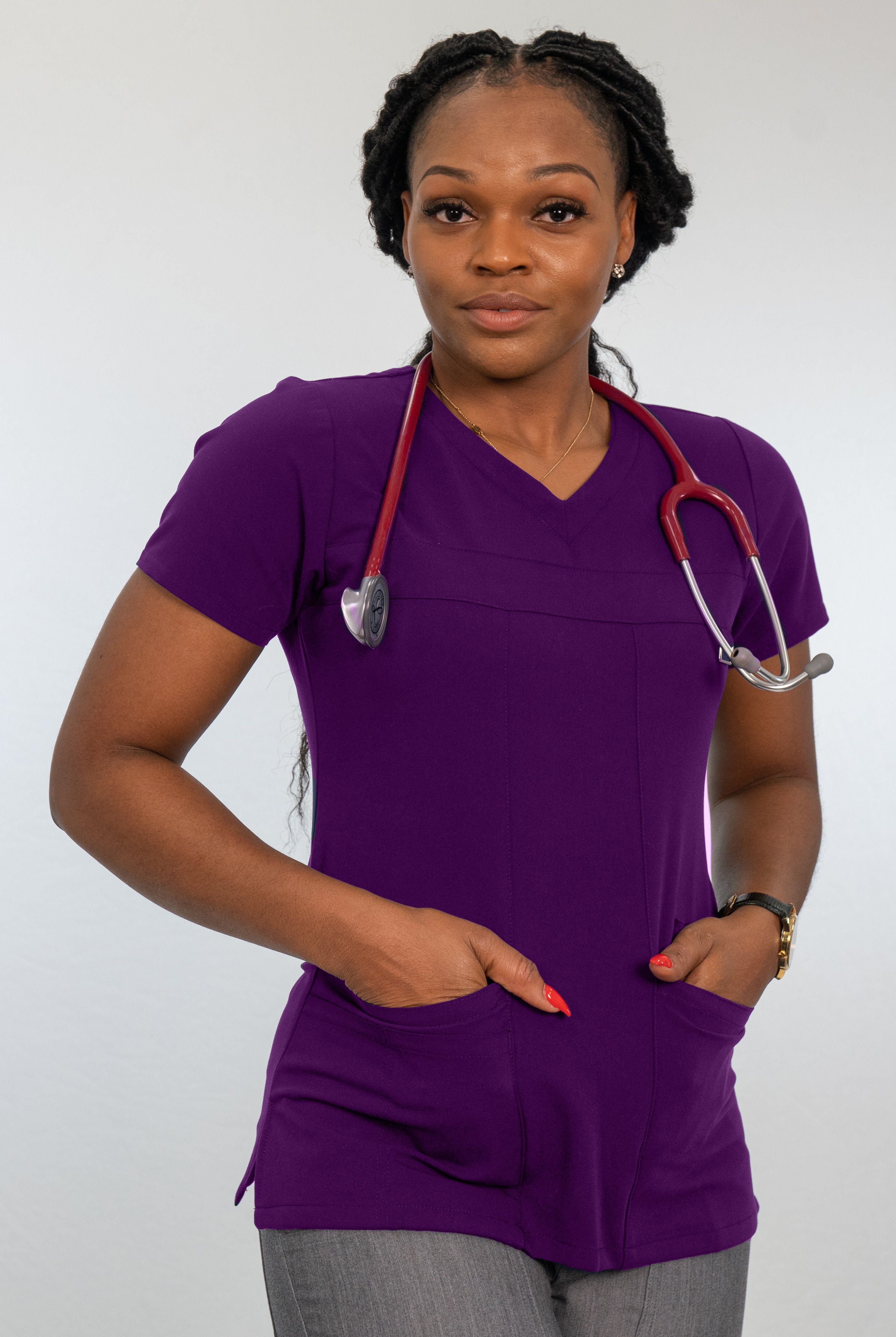 The Wozo Refined V-neck top combines a relaxed, but form-fitting and practical design with durable and luxuriously soft materials. Ideal for long days in the clinic and guaranteed to keep its vibrant color and supple feel after prolonged and repeated use, its proprietary antimicrobial fabric works as hard as you do, wicking away sweat and odor-causing bacteria.