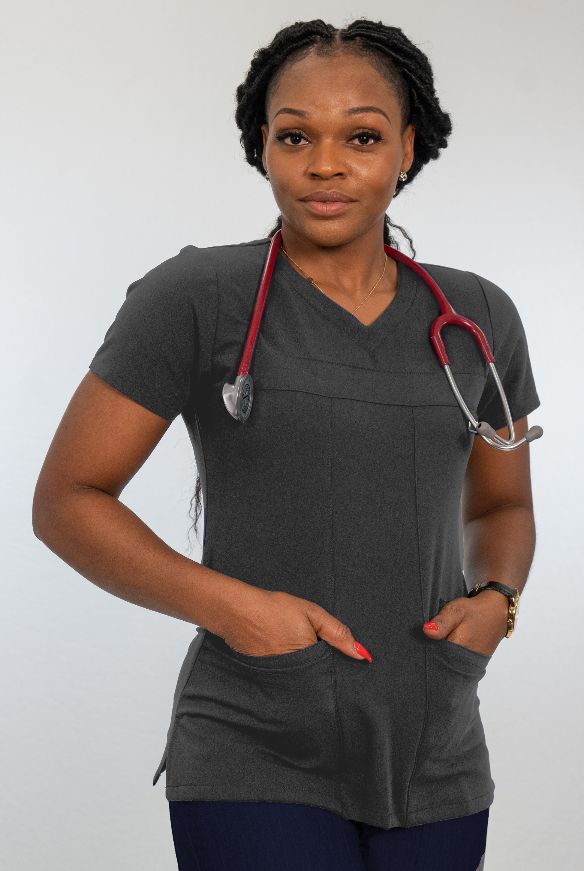 The Wozo Refined V-neck top combines a relaxed, but form-fitting and practical design with durable and luxuriously soft materials. Ideal for long days in the clinic and guaranteed to keep its vibrant color and supple feel after prolonged and repeated use, its proprietary antimicrobial fabric works as hard as you do, wicking away sweat and odor-causing bacteria.