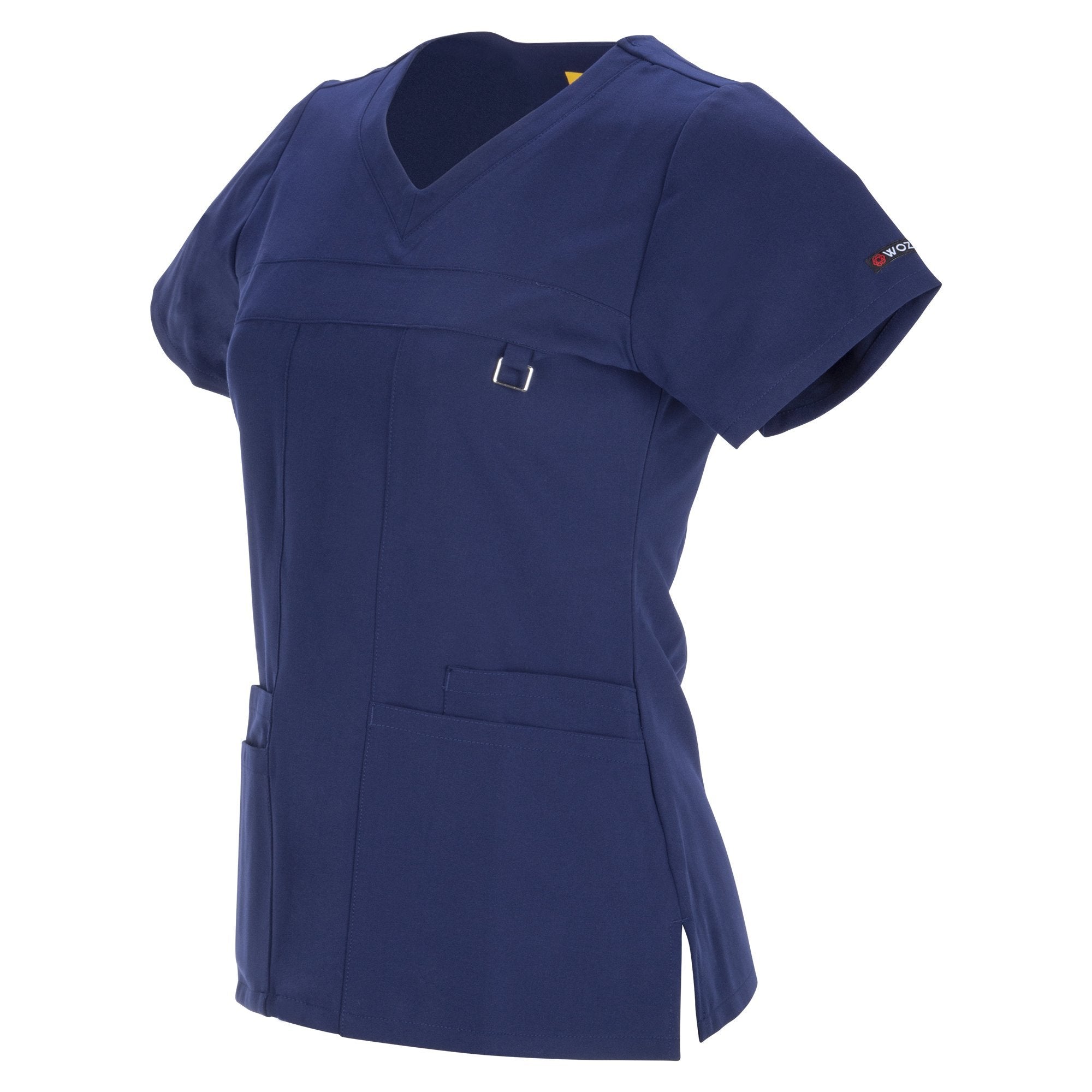 The Wozo Refined V-neck top combines a relaxed, but form-fitting and practical design with durable and luxuriously soft materials. Ideal for long days in the clinic and guaranteed to keep its vibrant color and supple feel after prolonged and repeated use, its proprietary antimicrobial fabric works as hard as you do, wicking away sweat and odor-causing bacteria.
